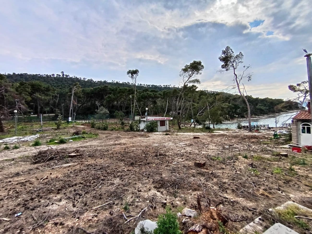 Posebno upozoravaju na prizore ogoljenog prostora, gdje su, umjesto nekadašnje borove šume, ostali tek panjevi okruženi betonom. Navode kako su stabla koja su pružala hlad i prirodni ambijent uklonjena, a prostor prenamijenjen za komercijalne sadržaje.