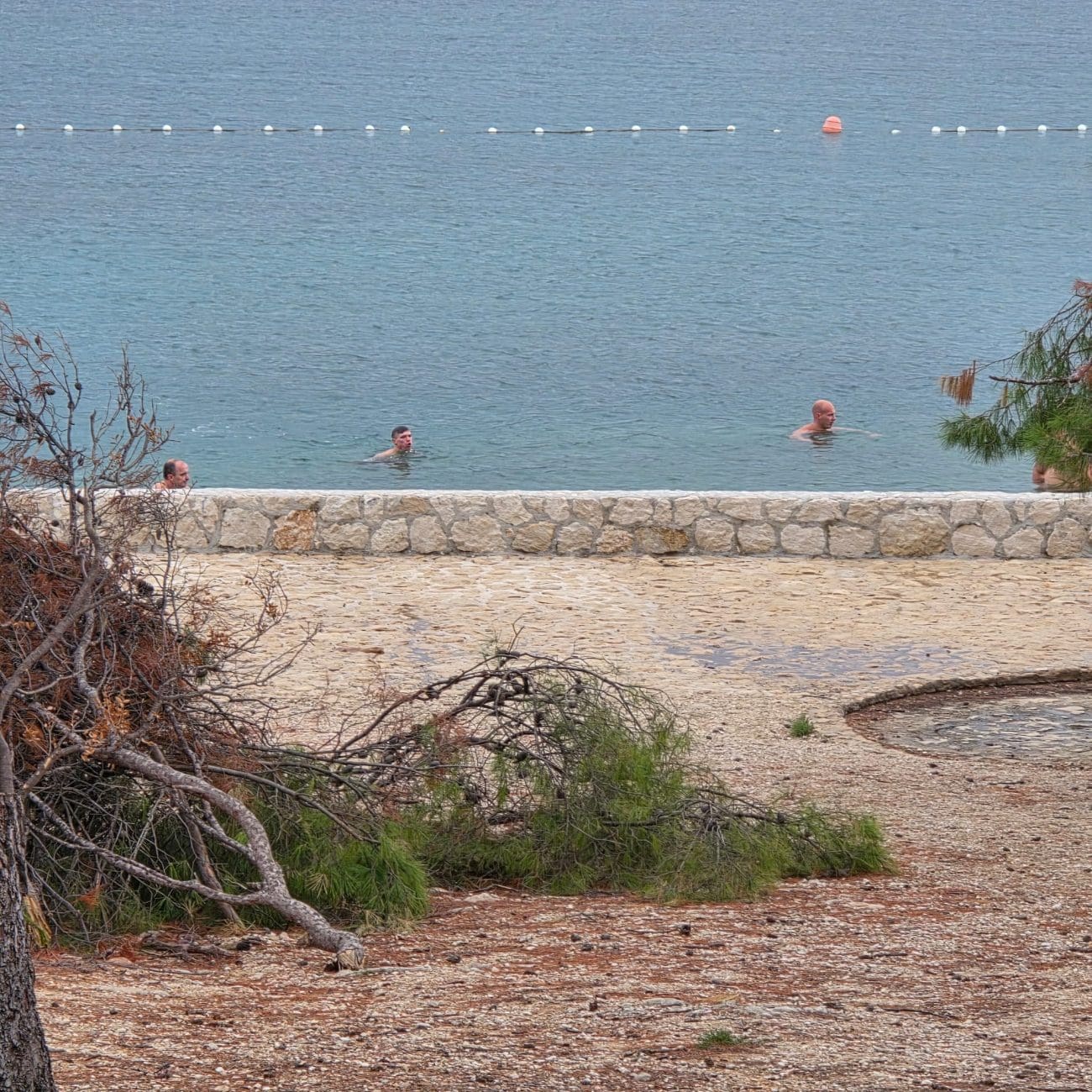 Iako kalendar pokazuje kraj listopada, a nebo nad Splitom je sivo, najhrabriji Splićani i danas su se okupali na plaži Prva voda podno Marjana. Unatoč tmurnom vremenu i temperaturi zraka od oko 19 stupnjeva Celzijevih, nekoliko pojedinaca odlučilo je iskoristiti miran dan za uživanje uz more.