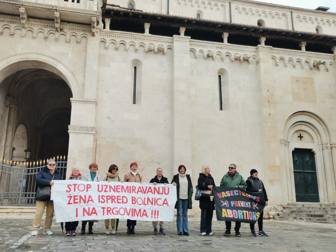 "Danas smo se okupili na mirnom prosvjedu nasuprot molitelja u Trogiru, poručujući jasno: prestanite uznemiravati žene!
