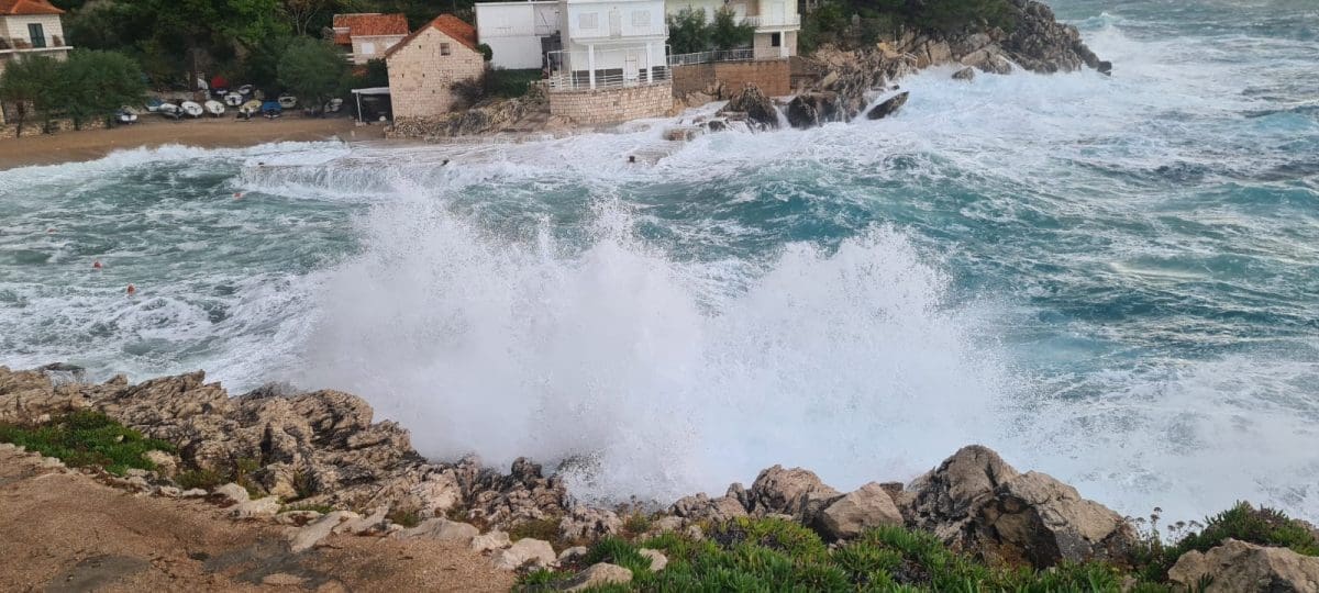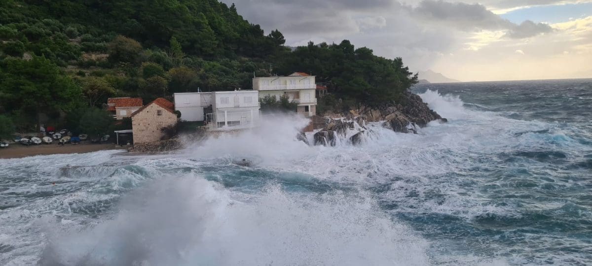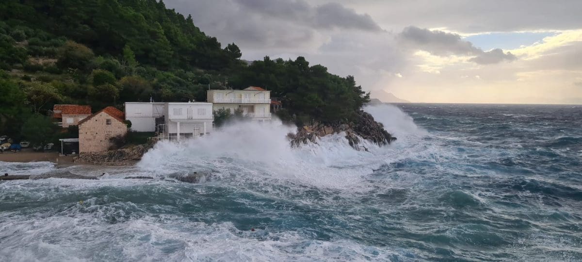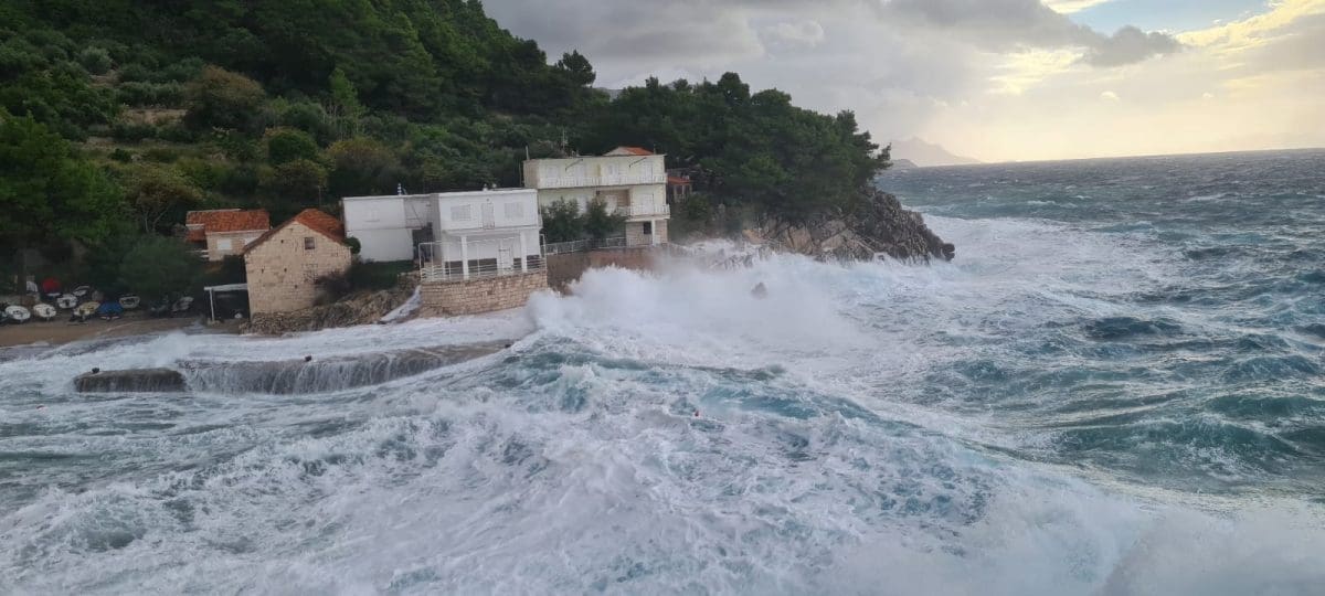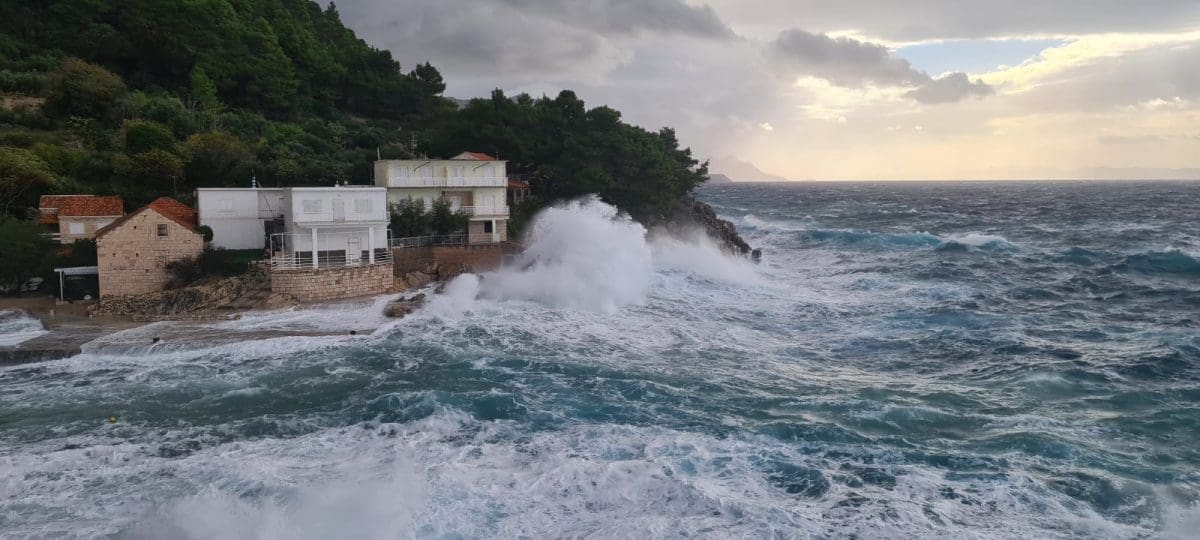 Udari vjetra povremeno prelaze 100 kilometara na sat, a more je više od 80cm iznad srednje razine.