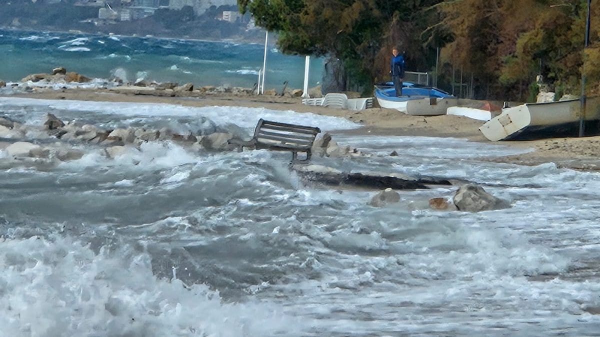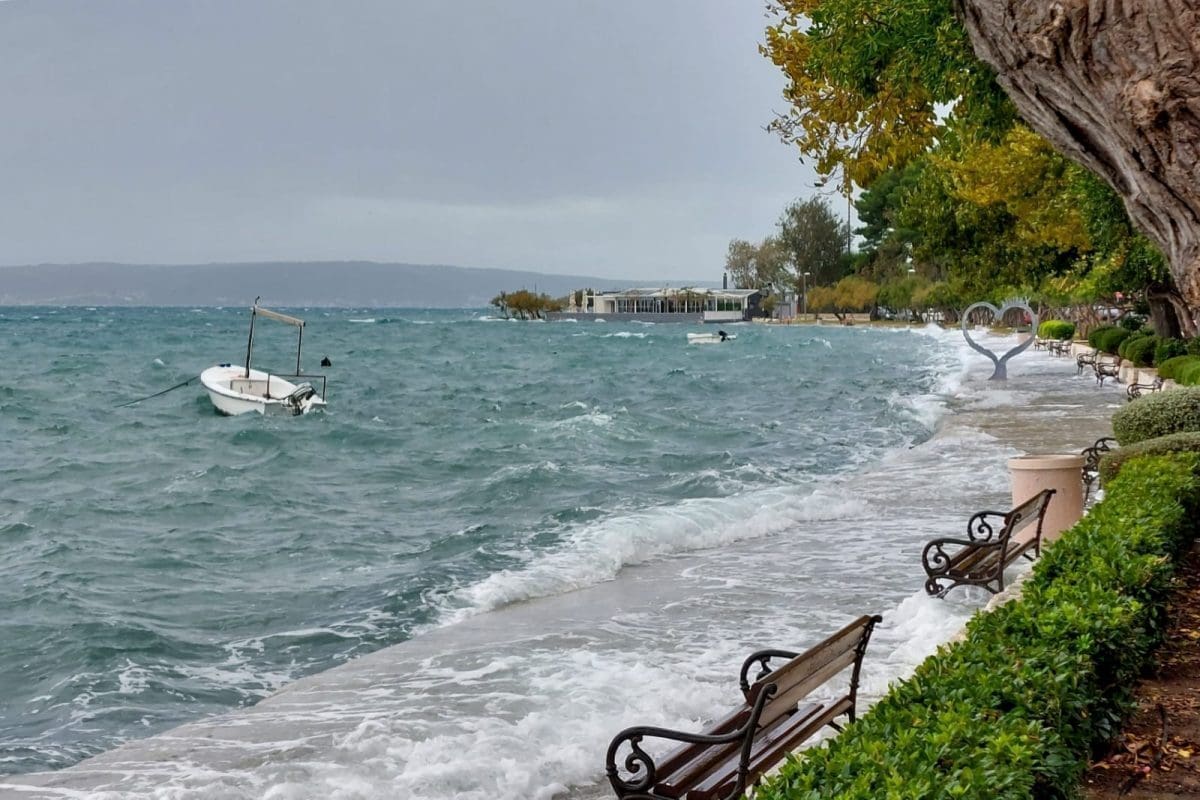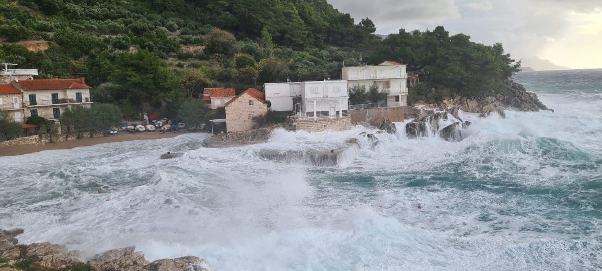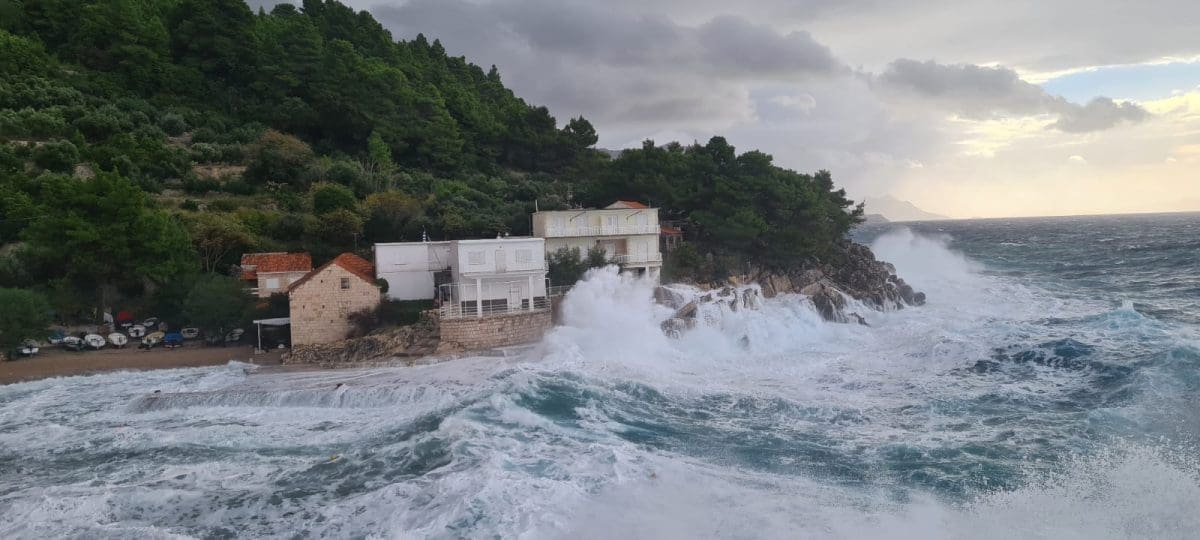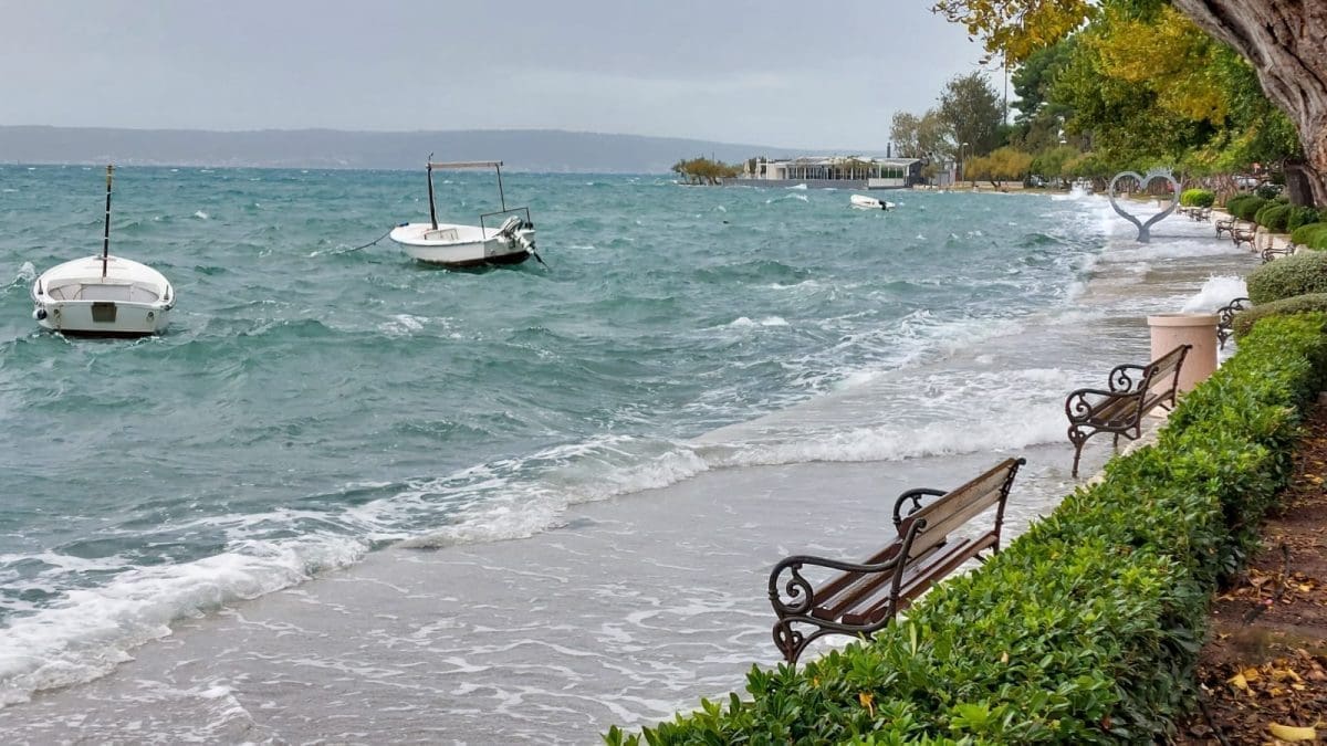Udari vjetra povremeno prelaze 100 kilometara na sat, a more je više od 80cm iznad srednje razine.