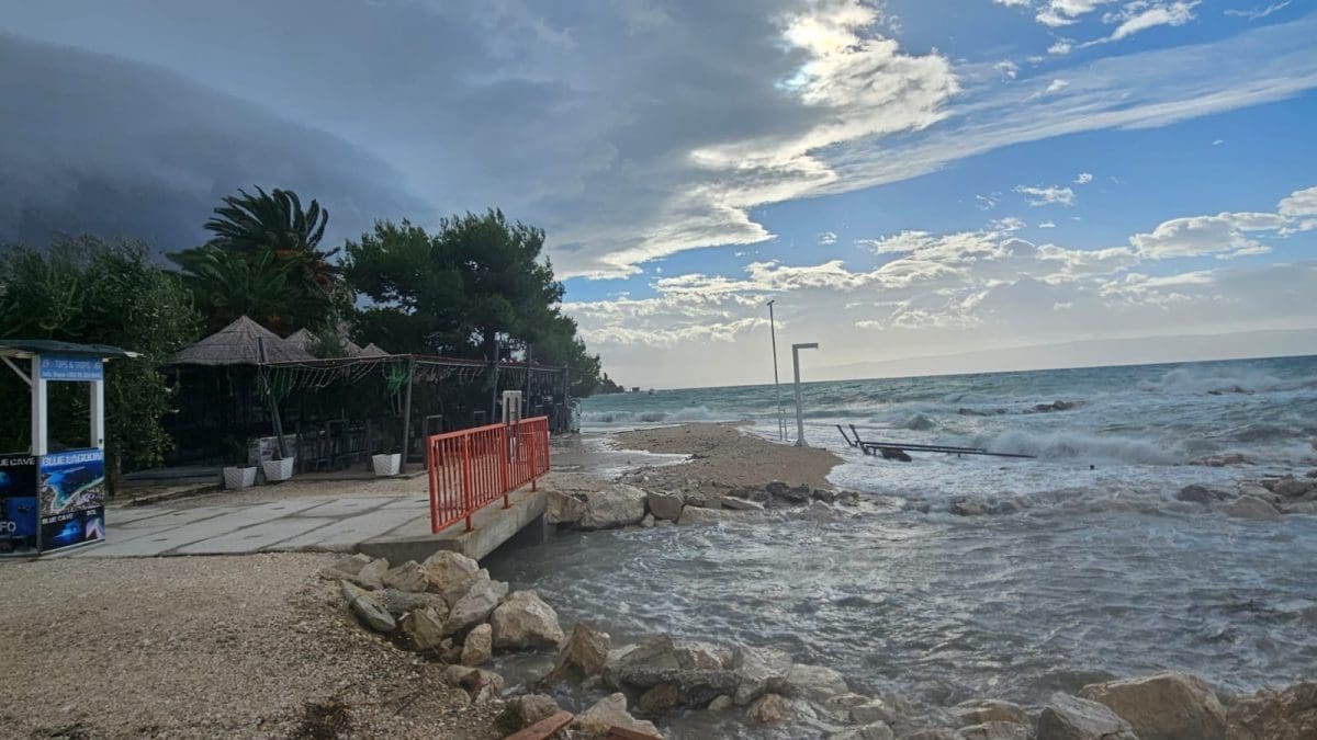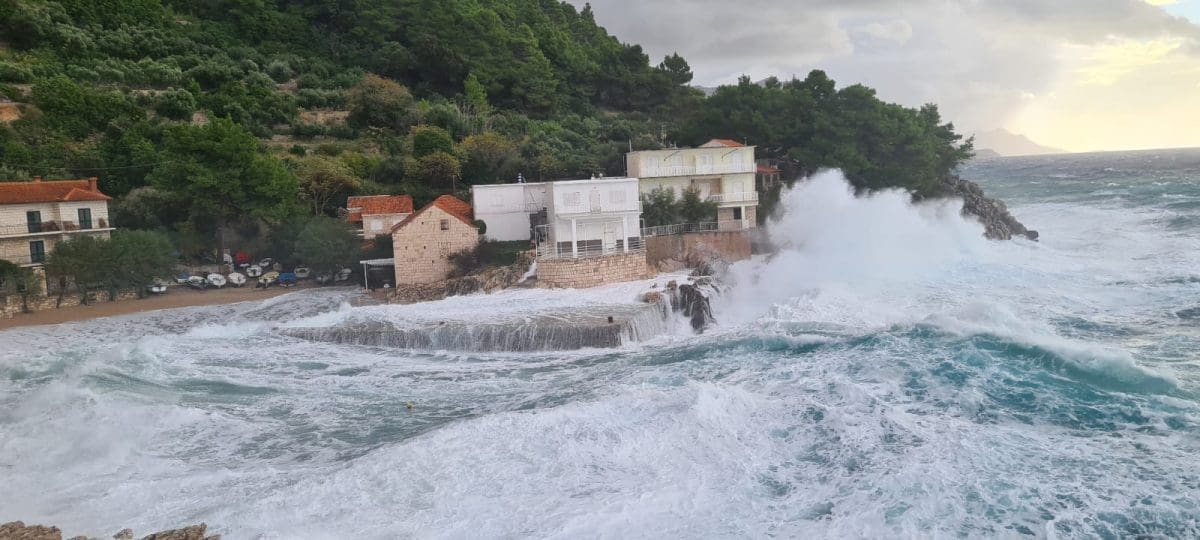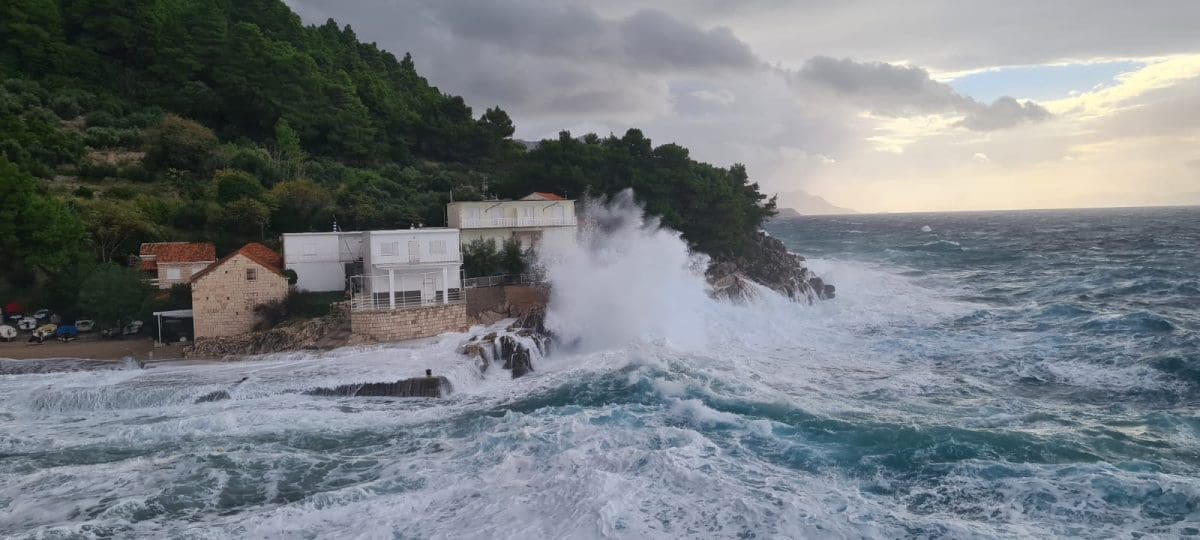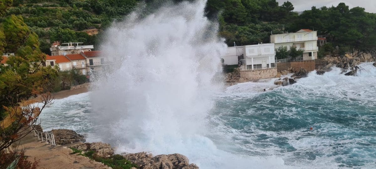 Veći dio obale i otoka Dalmacije jutros je pogođen velikom plimom i valovima koji su posljedica duboke ciklone i olujnog oštra i lebića koji puše još od ranih jutarnjih sati.