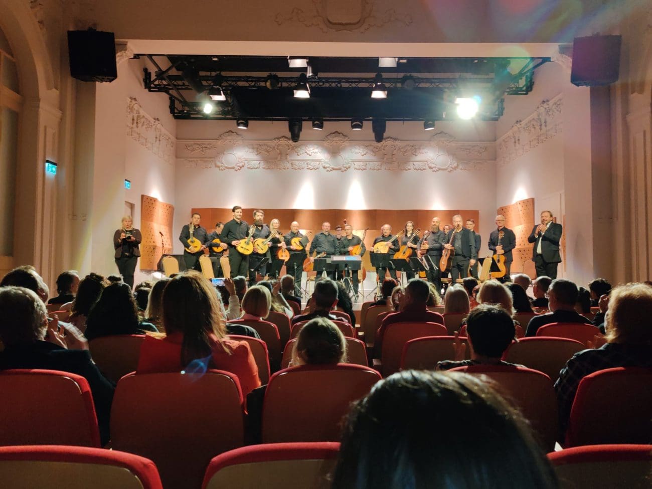Na pozornici je nastupio orkestar Torre del Alfiler iz Granade, predvođen dirigentom Javierom Ginerom, uz koncert majstora Juana Carlosa Estéveza. Glazbenici su demonstrirali iznimnu vještinu na bandurrijama, španjolskim lutnjama i gitarama – instrumentima koji nose prepoznatljivu boju španjolske tradicije. Publika je s posebnom pažnjom pratila precizne, brze pasaže i bogati zvuk koji je ispunio prostor Hrvatskog doma.
