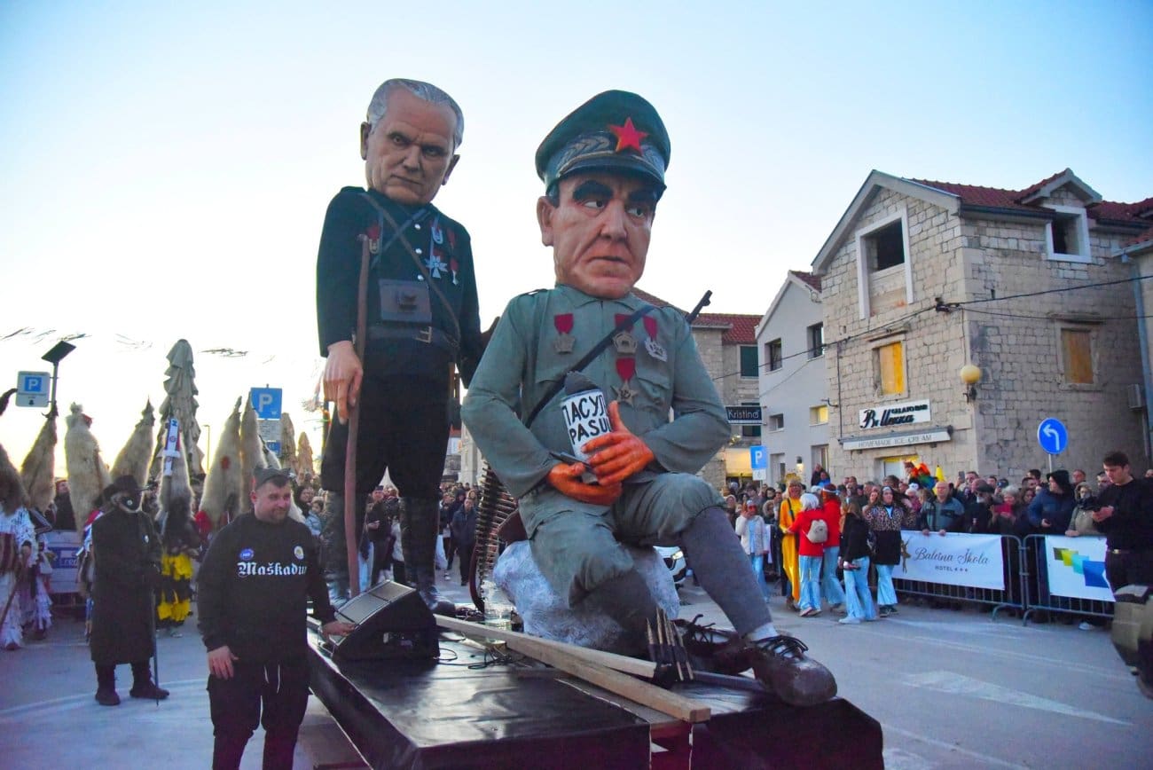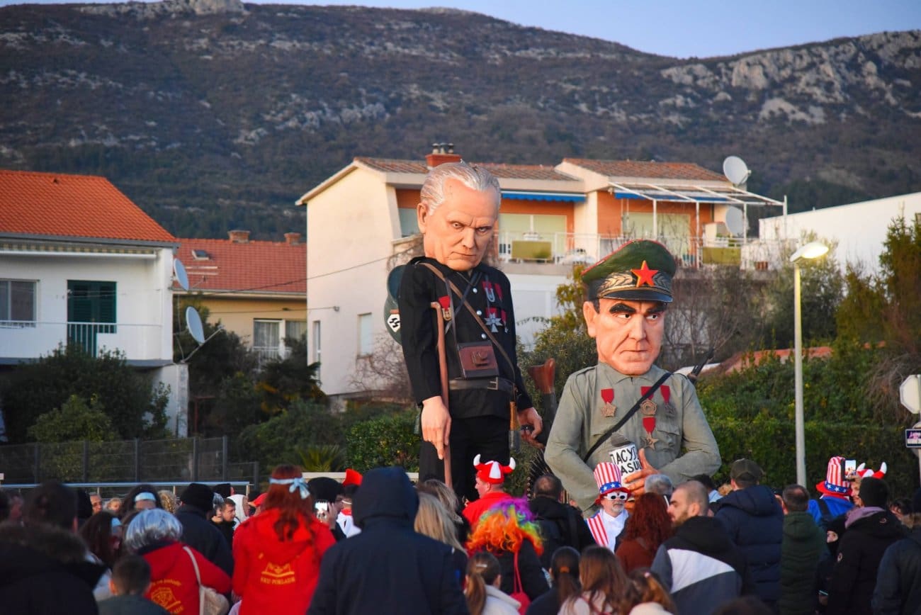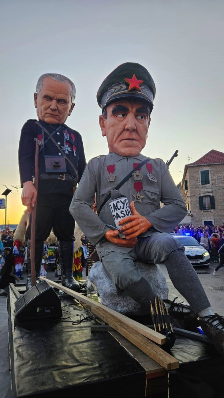 Održane su završne maškare Donjokaštelanskog krnjevala. Krnje lutke u liku Ante Pavelića i Josipa Broza Tita igraju posljednju "utakmicu", te nakon 80 godina traže provjeru VAR-a.