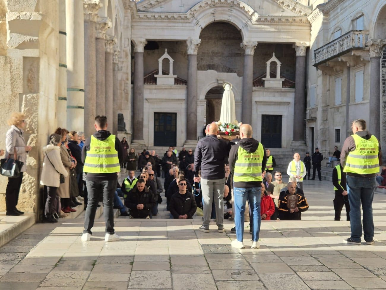 Kao i svake prve subote u mjesecu, splitski Peristil jutros je ponovno bio mjesto molitvenog okupljanja. Točno u 8:30 započela je polusatna krunica, a za razliku od nekih ranijih susreta, ovaj je protekao mirno, bez incidenata i prosvjednih reakcija.
