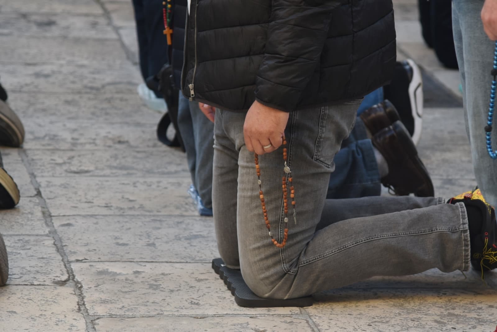 Na Peristilu su se i ove subote okupili molitelji, grupa muškaraca okupljena pod imenom "Marijini ratnici", koji svake prve subote u mjesecu kleče i mole krunicu. Okupili su se u crkvi sv. Filipa Nerija gdje je u 7 sati služena Euharistija. Nakon nje molitelji su se uputili prema Peristilu gdje su molili krunicu.
