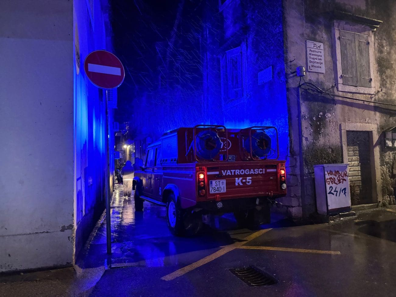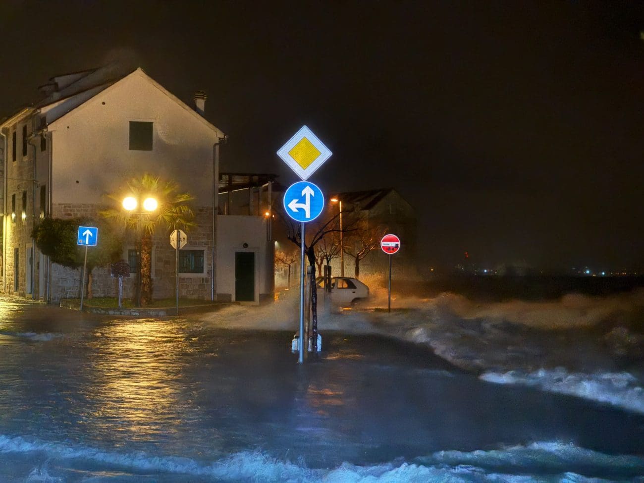 Osim toga, čitatelj nam javlja da je oko 19 sati i 30 minuta riva na području Štafilića, Novog i Starog neprohodna tj. razina mora dolazi do razine automobila.