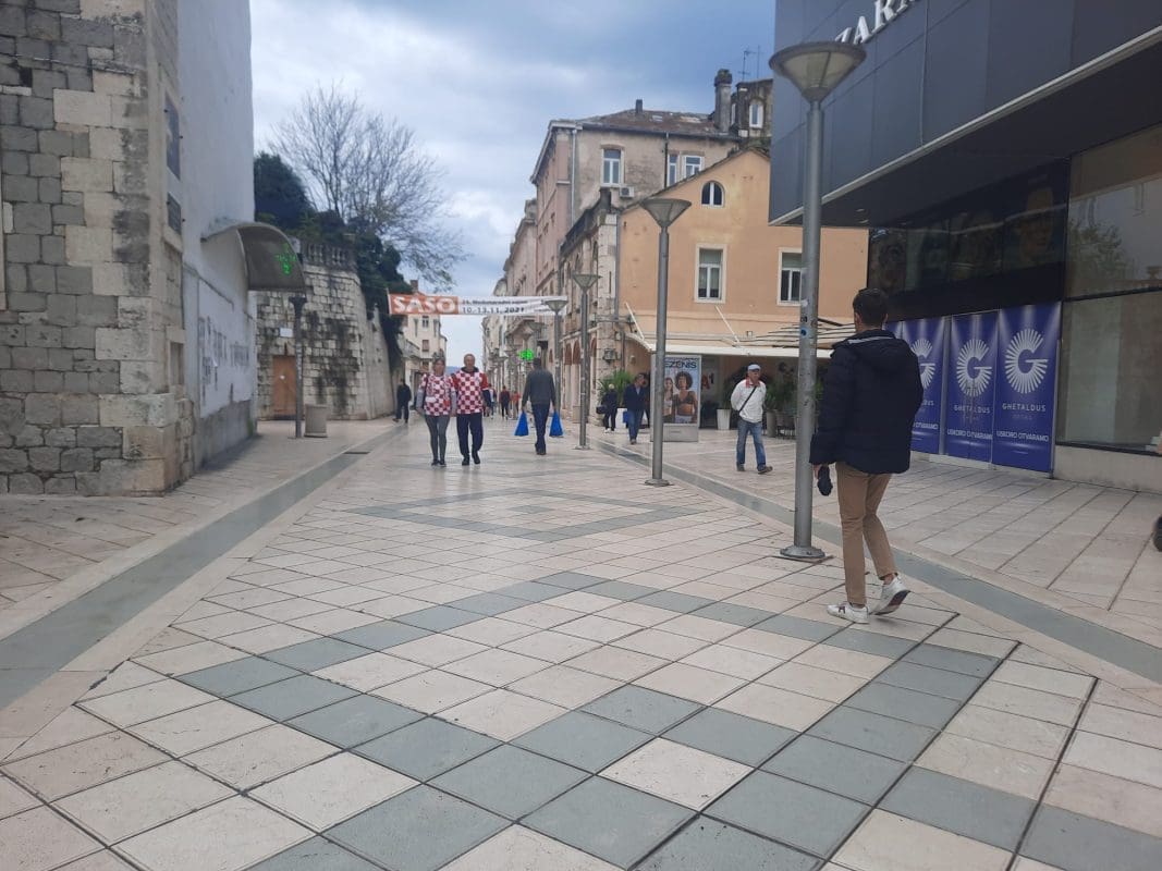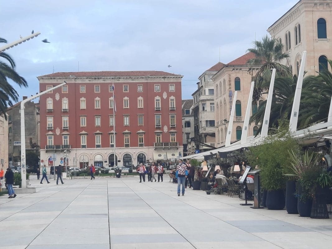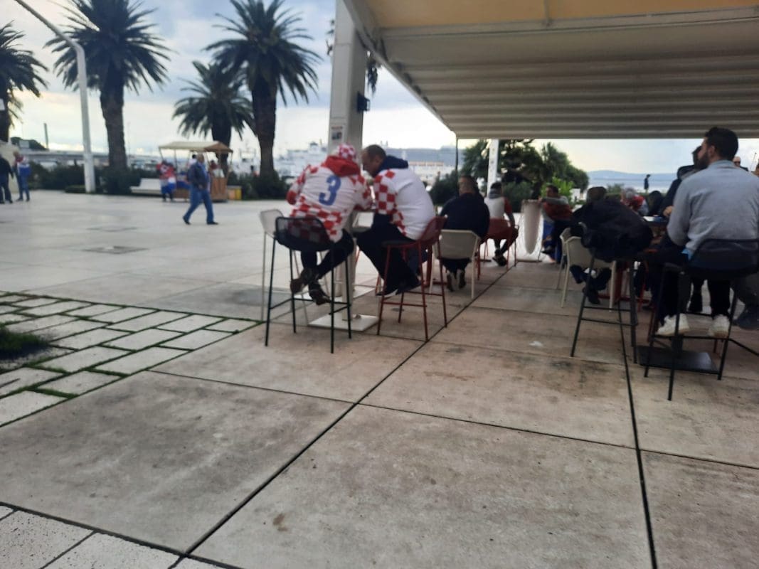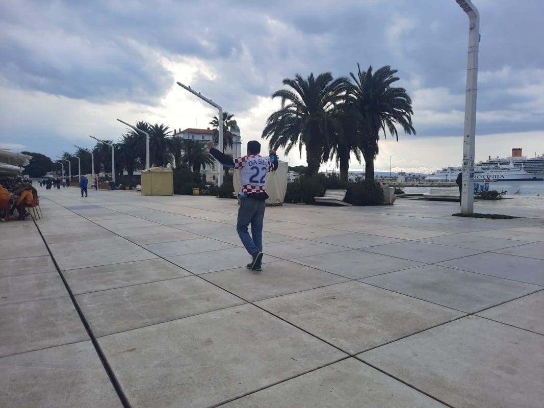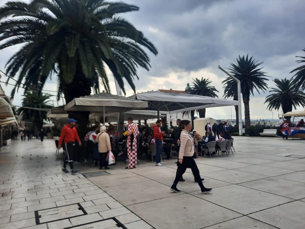 Navijačka euforija se može vidjeti, ali i čuti u centru Splita. Utakmica se igra danas s početkom u 15 sati na Poljudu, a velika euforija vlada među Splićanima. Tako je sinoć mnoge iznenadio prizor na Cankarevoj poljani.