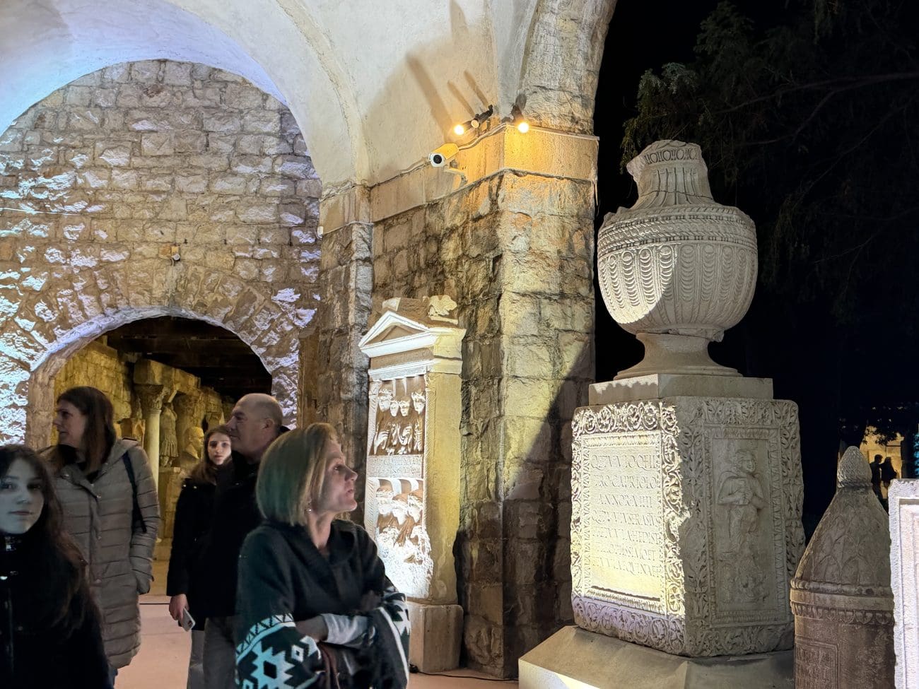 Priključili smo se brojnim Splićanima koji rado sudjeluju u ovoj manifestaciji te posjetili nekoliko važnih kulturnih ustanova koje su ponudile zanimljive i sadržajne programe. Naš obilazak započeo je u Arheološkom muzeju, gdje smo razgledali brojne vrijedne arheološke nalaze, kamene spomenike i darovnice koji svjedoče o bogatoj prošlosti i važnosti hrvatske kulturne baštine. Poseban dojam ostavila je ugodna atmosfera u muzeju, koju su dodatno upotpunili glazba, rasvjeta i svjetlosni efekti, stvarajući posebno ozračje.