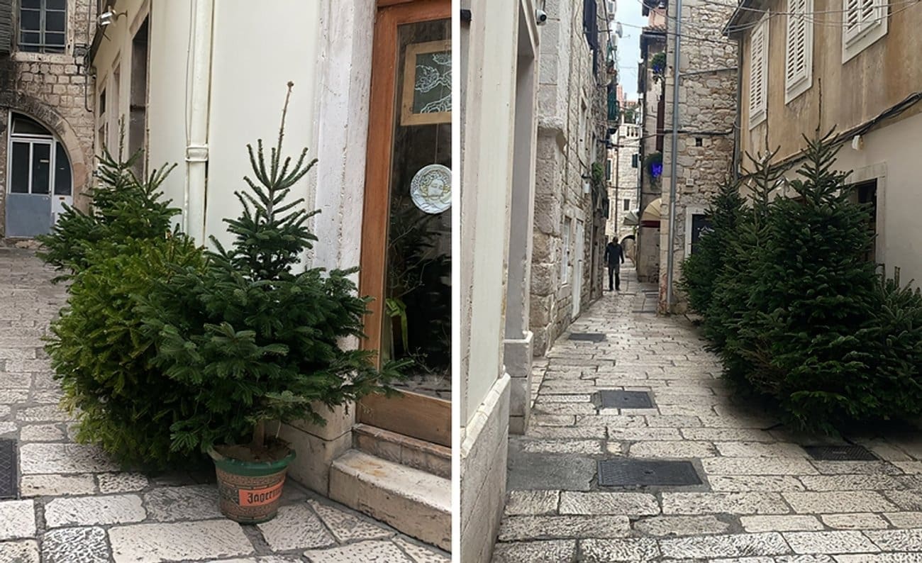 Posvuda u centru Splita odbačeni borovi čekaju da ih netko konačno skupi i odnese. Odbačena božićna drvca nalaze se na nekoliko lokacija unutar Dioklecijanove palače, a njihov tužni prizor narušava izgled povijesne jezgre grada.