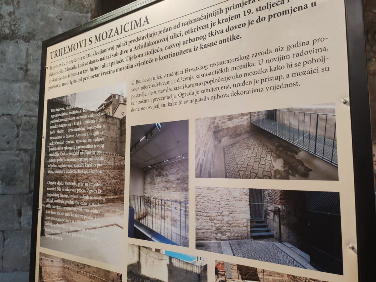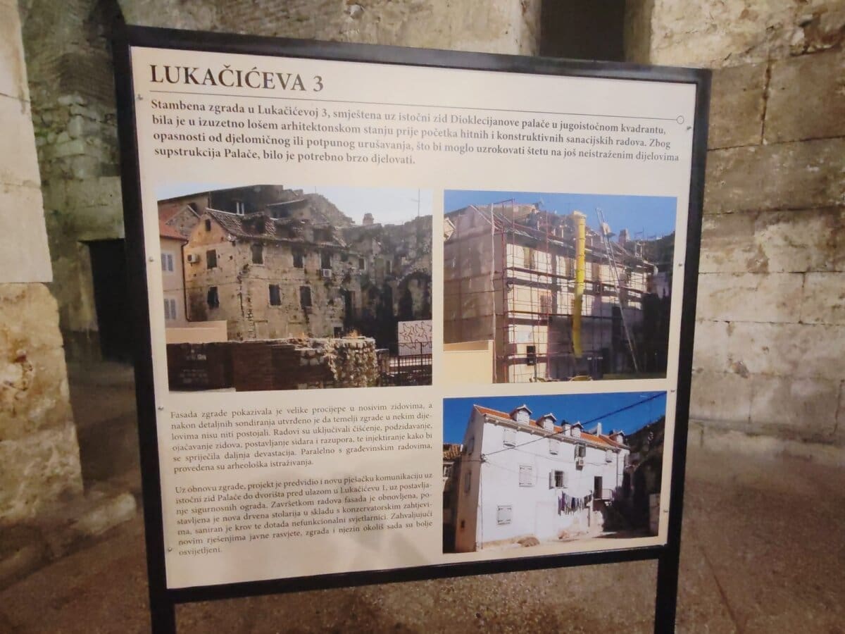 Izložba, postavljena na 10 panoa, prikazuje dosadašnja ulaganja u obnovu i očuvanje povijesne jezgre Splita, s posebnim naglaskom na radove unutar slavne Dioklecijanove palače.