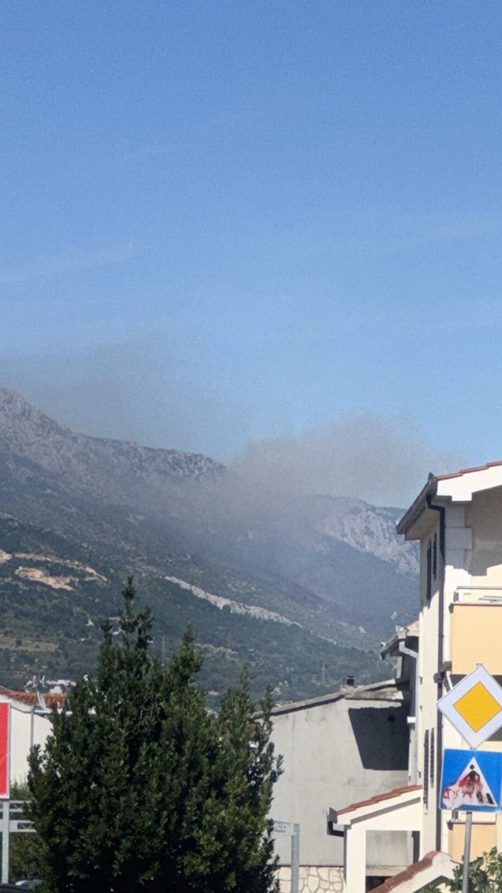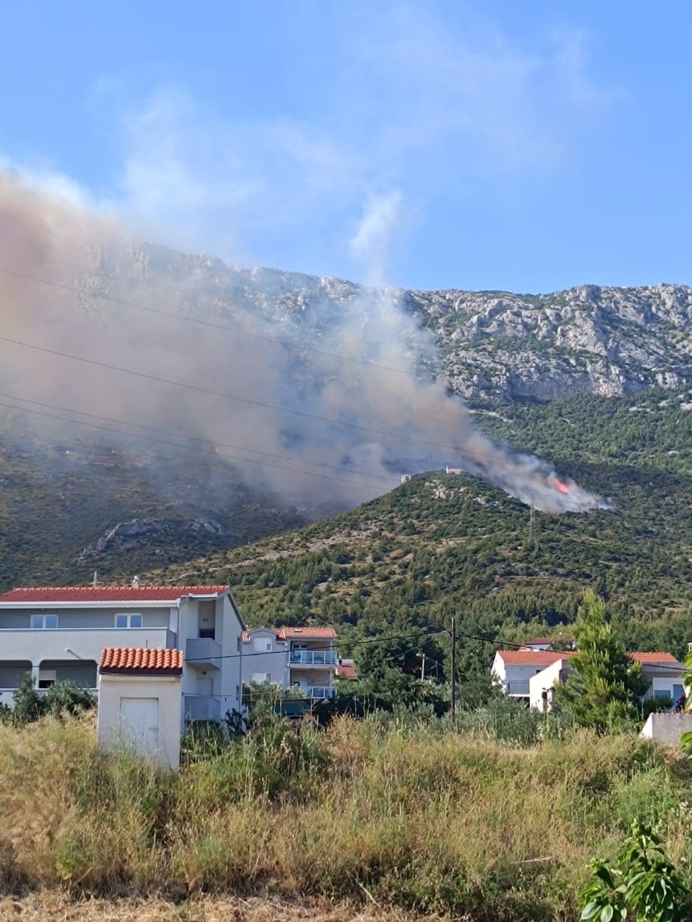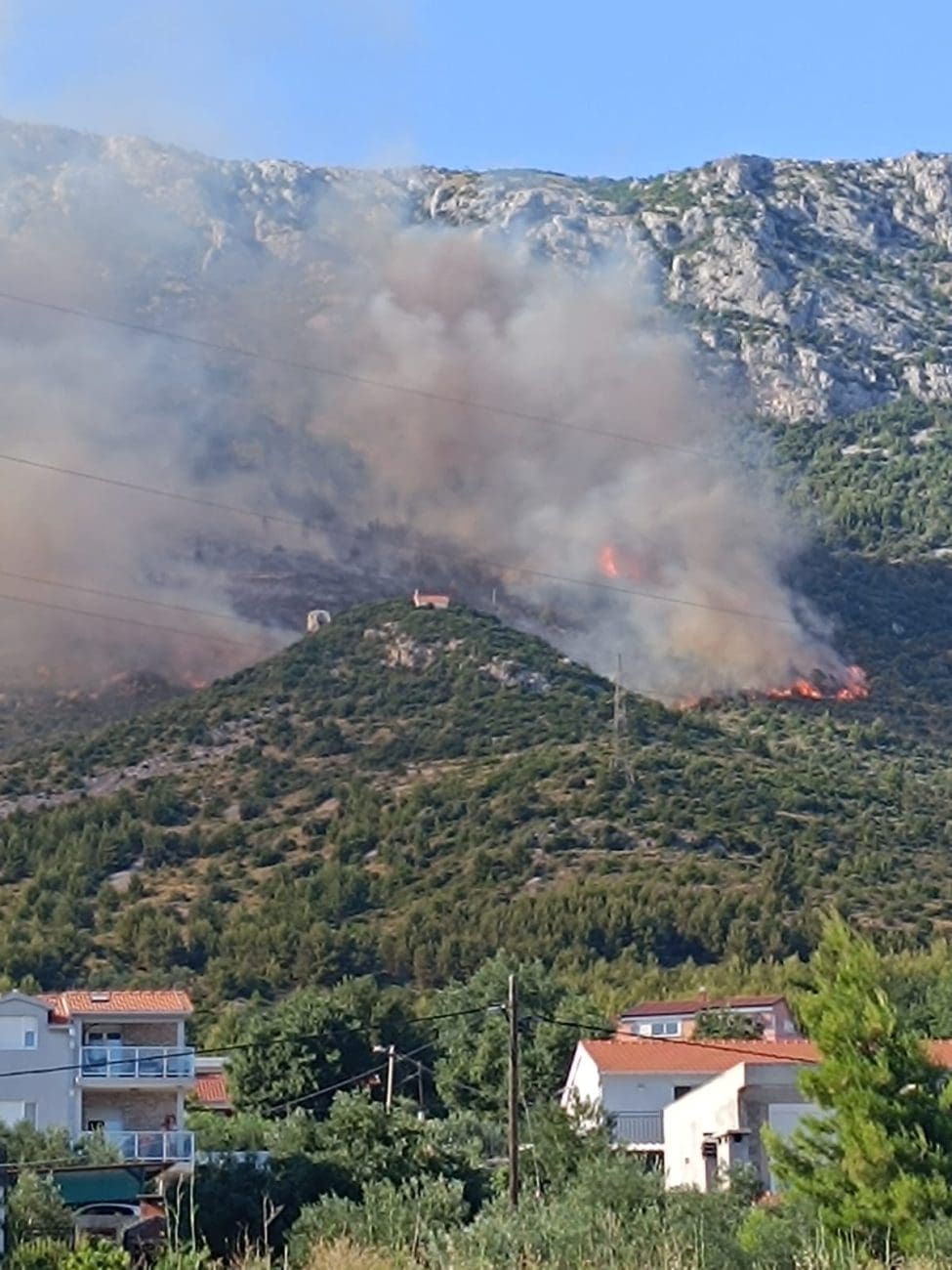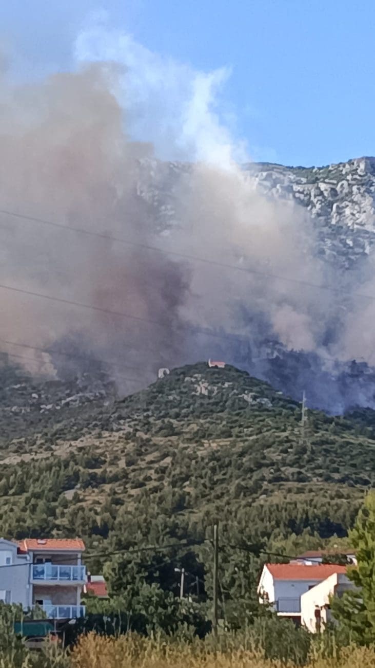 Na mjesto požarišta stigla su dva kanadera. Vatrogasci su nam javili da su digli sve raspoložive snage na noge te da objekti nisu ugroženi. Osim toga, vjetar im stvara problem prilikom gašenja, ali uz pomoć vatrogasaca, trebalo bi sve biti uredu. Kanaderi su kratko gasili požar, ali uskoro su morali biti prizemljeni.