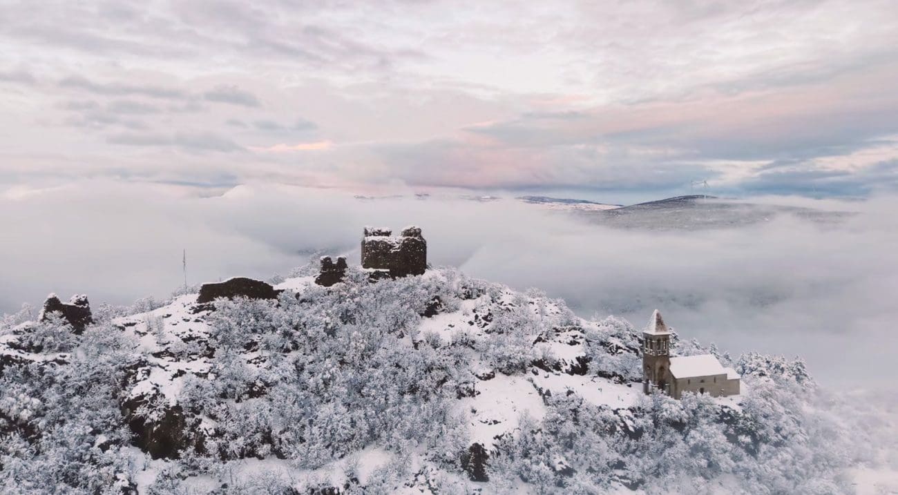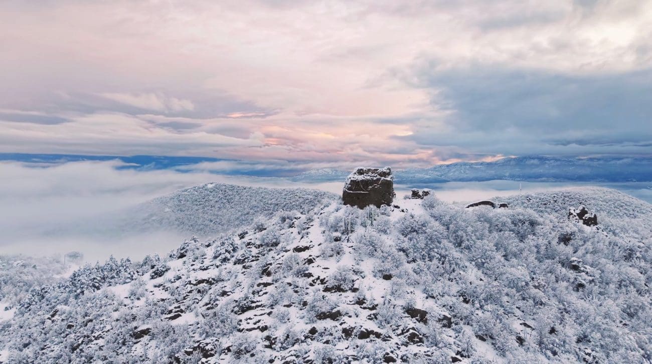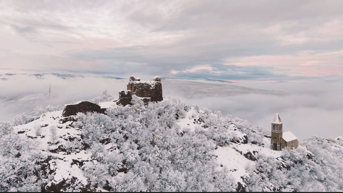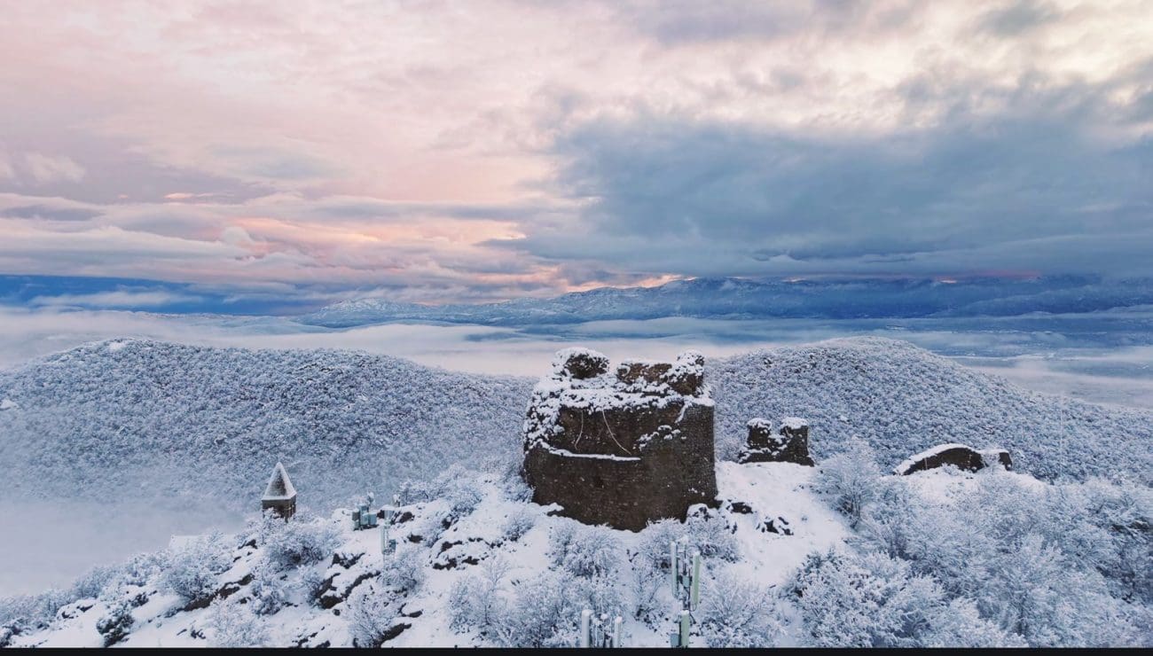 U impresivnom kadru snimljenom dronom u smiraj dana, visoko iznad oblaka, stara kula Čačvina izranja iz snijega i magle, okružena zimskom tišinom. Svjetlo sutona obojilo je planinske obrise u hladne plave tonove, dok su kameni zidovi, nagriženi vremenom, ostali stajati kao nijemi svjedoci prošlih stoljeća.