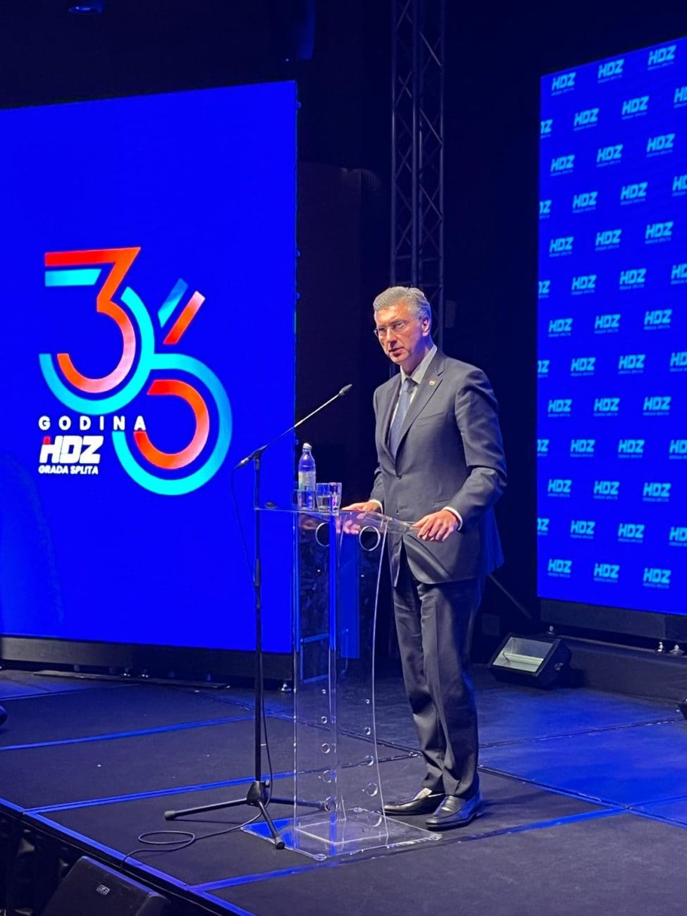 "Baš me maloprije podsjetio Ante Mihanović kako sam upravo u ovoj dvorani krenuo u svoju kampanju 2016. godine. Podržala su me tada sva četiri dalmatinska predsjednika županijskih organizacija HDZ-a. Danas je naša Vlada u trećem mandatu; uspješno vodimo Hrvatsku i bili smo jaki u svim situacijama. Hrvatska je danas u bitno boljoj poziciji nego što je bila prije. A naša stranka svoj najveći politički uspjeh na prošlim lokalnim izborima doživjela je upravo pobjedom splitskog i dalmatinskog HDZ-a i gradonačelnika Tomislava Šute i zato vam svima hvala."