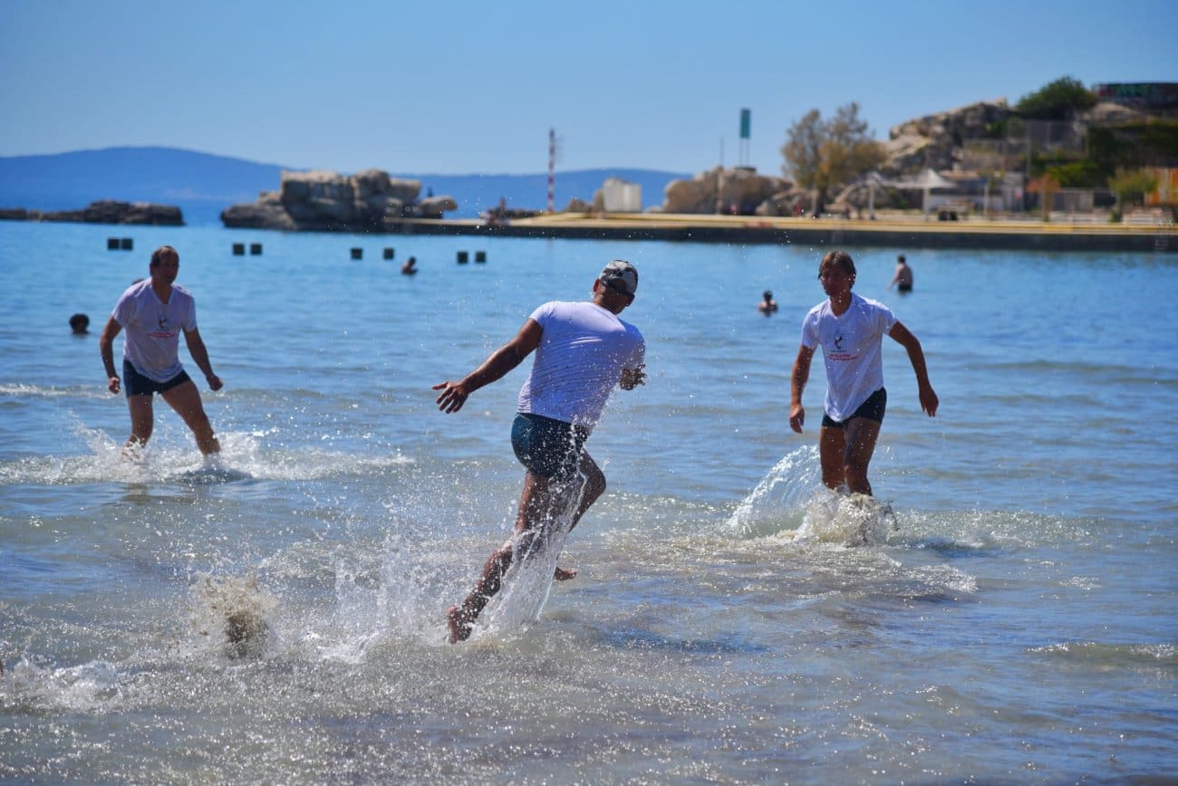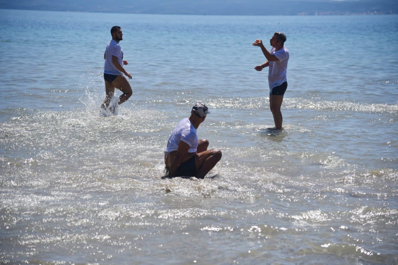 Društvo picigin Bačvice dalo je svoju podršku flotili te su u majicama s motivima Palestine odigrali picigin.