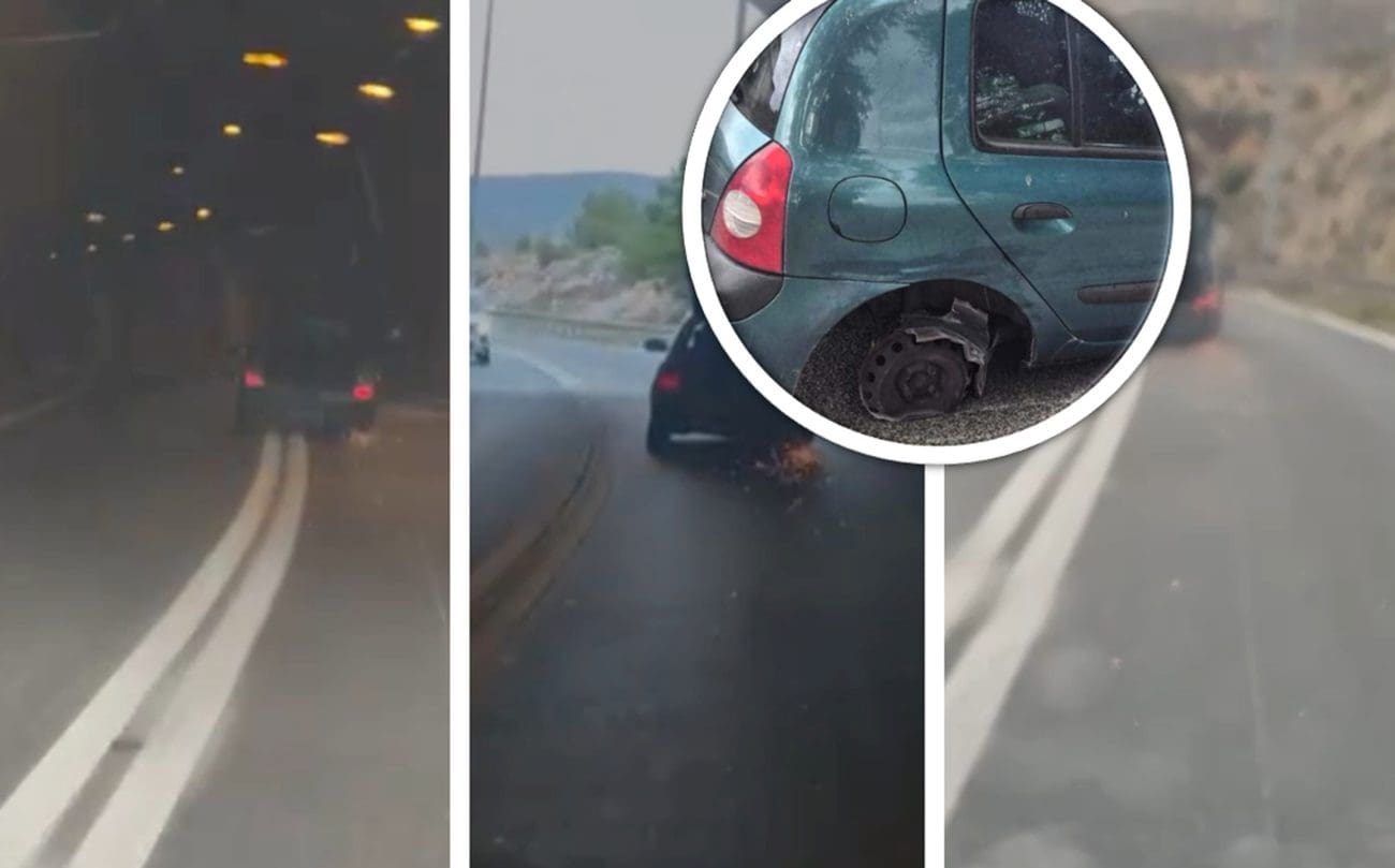 U okolici Šibenika snimljena je vozačica plavog Renault Clija koji se uporno kretao cestom – bez guma, i to na felgama koje su stvarale jake iskre po asfaltu. Snimke pokazuju kako automobil vozi kroz tunel i po otvorenoj cesti, dok se iz zadnjih kotača šire iskre i dim.