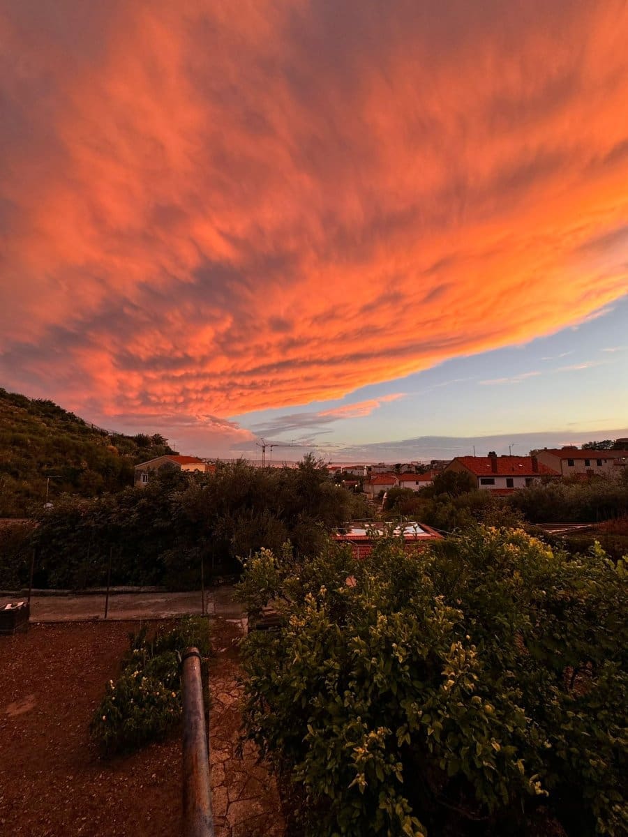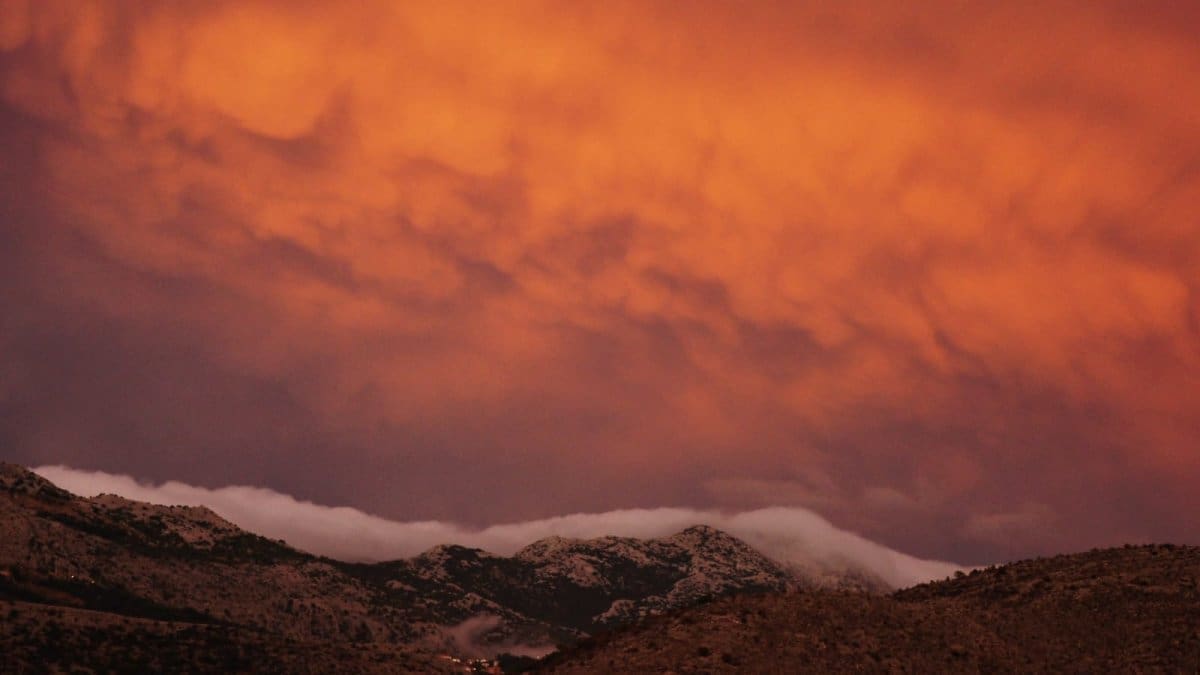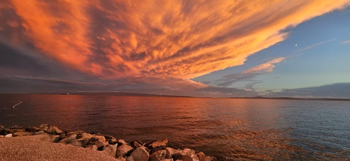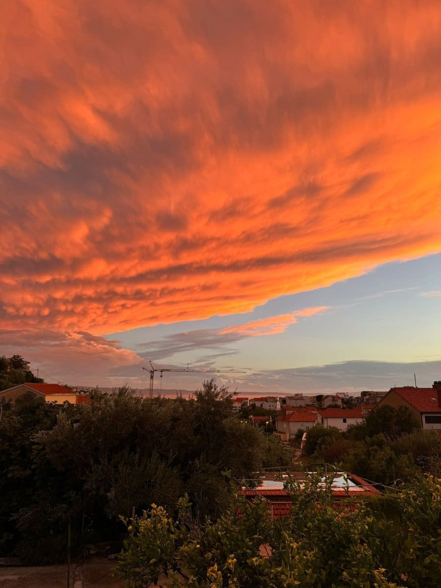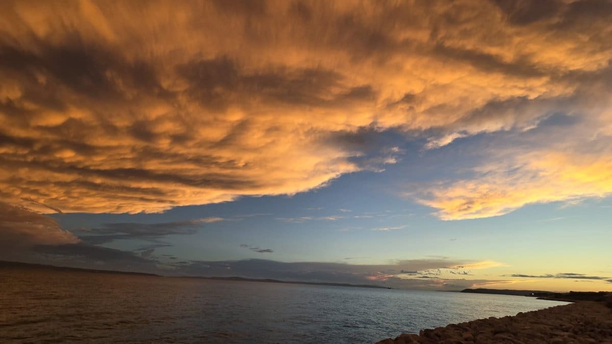 U popodnevnim i ranim večernjim satima razvedravanje je zahvatilo velik dio sjeverne i srednje Dalmacije, a na jugu i dalje ima mjestimičnih neverina. Nakon razvedravanja na nebu i nakon zalaska sunca su se pojavili predivni mamatusi.