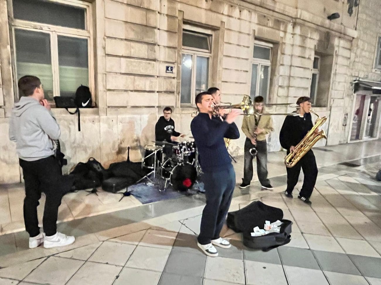 Posebno je dojmljivo bilo vidjeti kako glazba spaja generacije. Među okupljenima su bili učenici, stariji Splićani, turisti i društva iz grada – svi zajedno u istom ritmu.