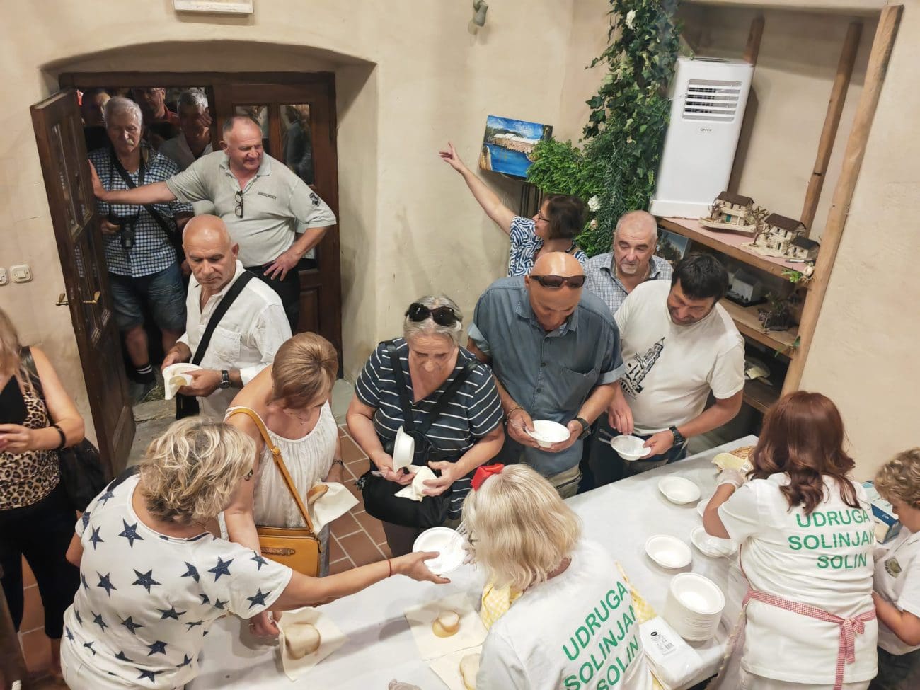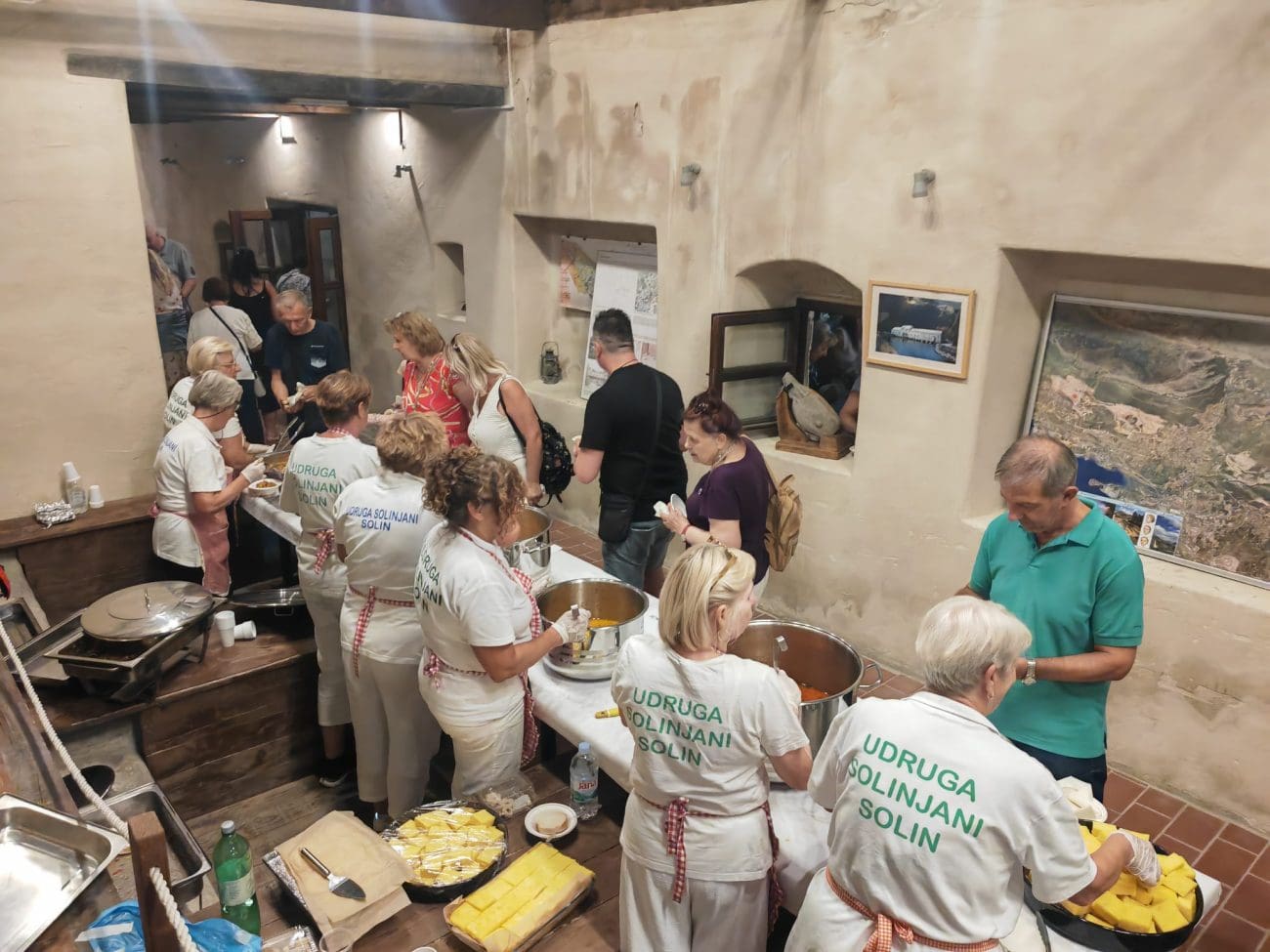 Iz kuhinjskih kutaka šire se zamamni mirisi tripica, manistre na pome, pure s mesom, pljeskavica od jadranske ribe i zapečenih lignji s povrćem. Na stolovima ne nedostaje ni slastica – domaćih kolača i fritula – koje nestaju u trenu. Jela pripremaju vrijedni članovi udruge Solinjani uz pomoć lokalnih restorana i partnera, a redovi za degustaciju stalno rastu.