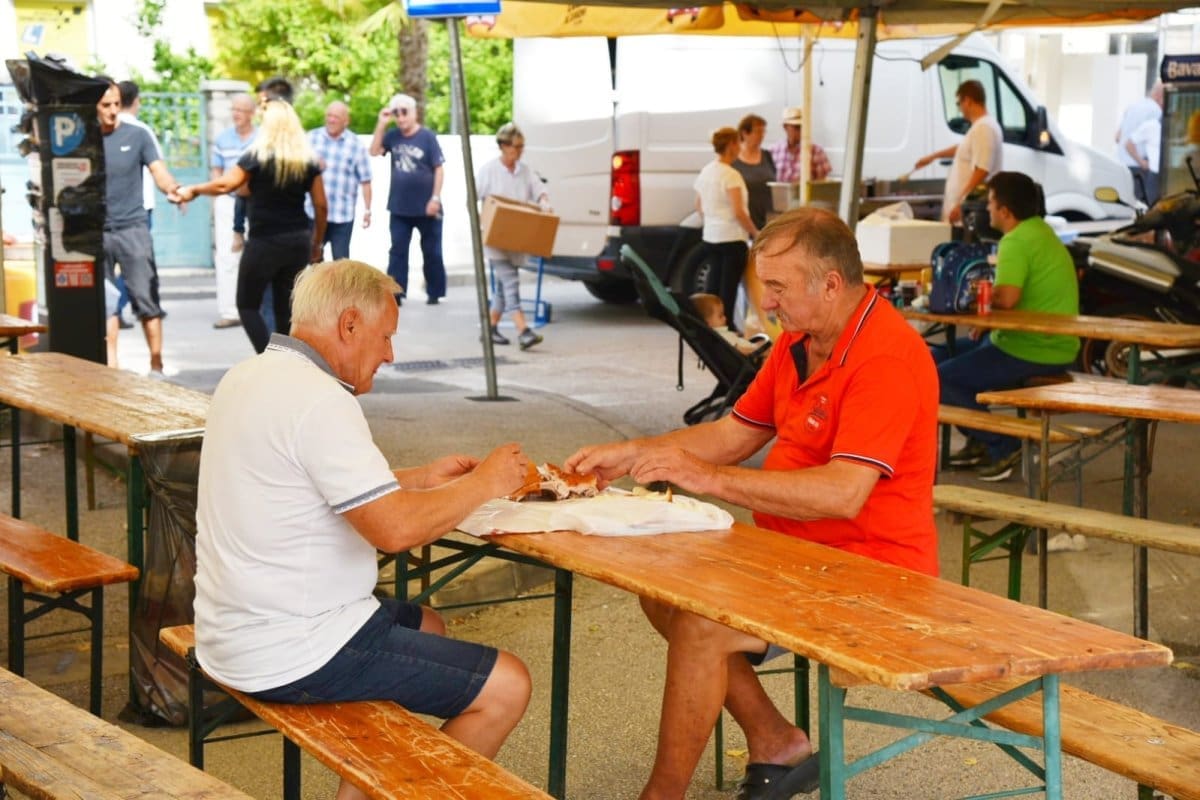 " Ja vam volim doći na ovakve fešte, pojest pola kila pečenog, popit koju bevandu i zapivat s ekipom. To je jednostavno naša dalmatinska tradicija, nakon što odslušaš misu", kazao nam je vremešni Kaštelanin te dodao kako cijene nisu visoke, a meso vrhunske kvalitete.