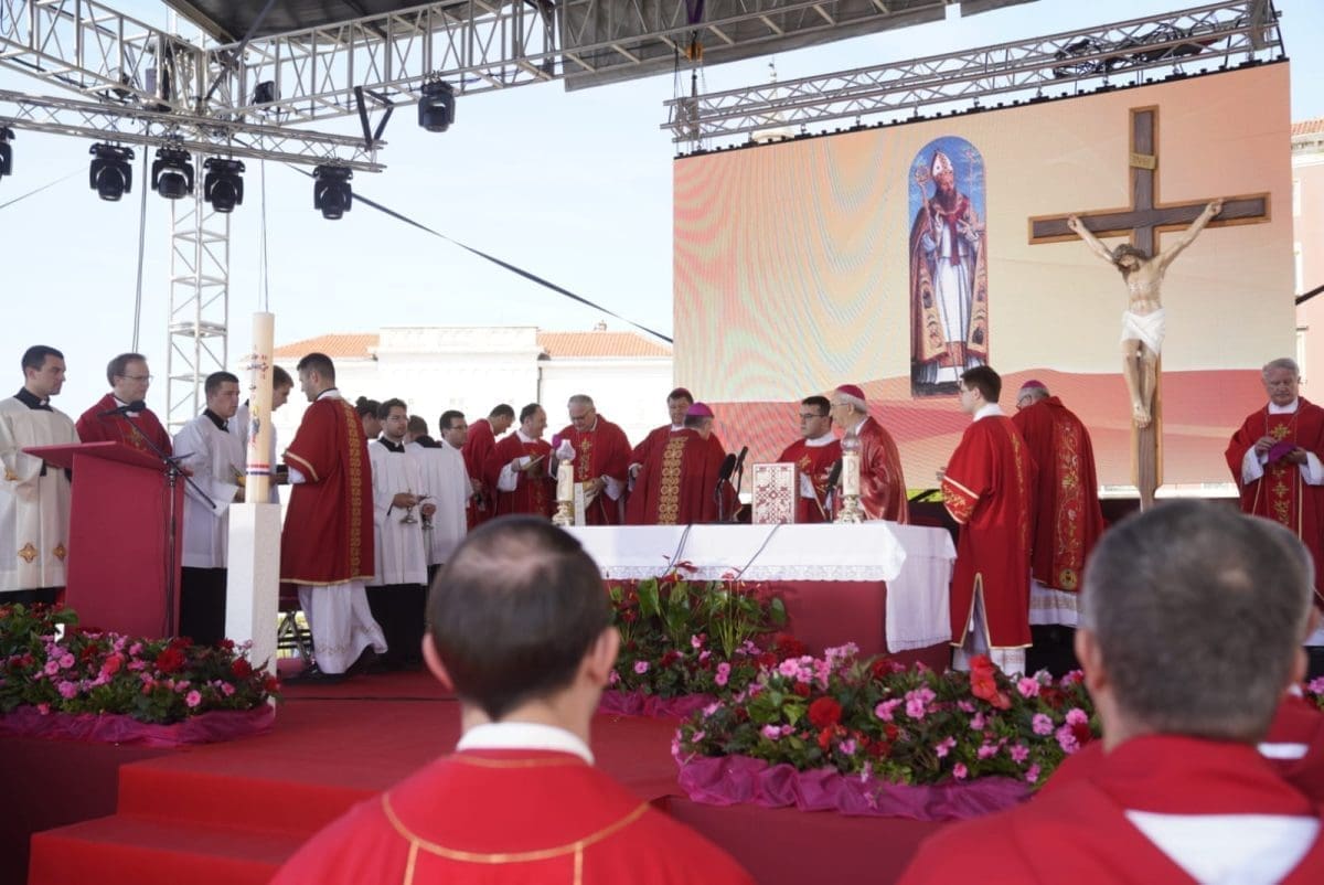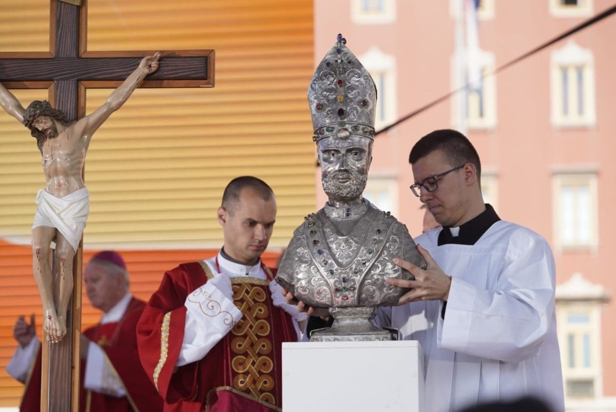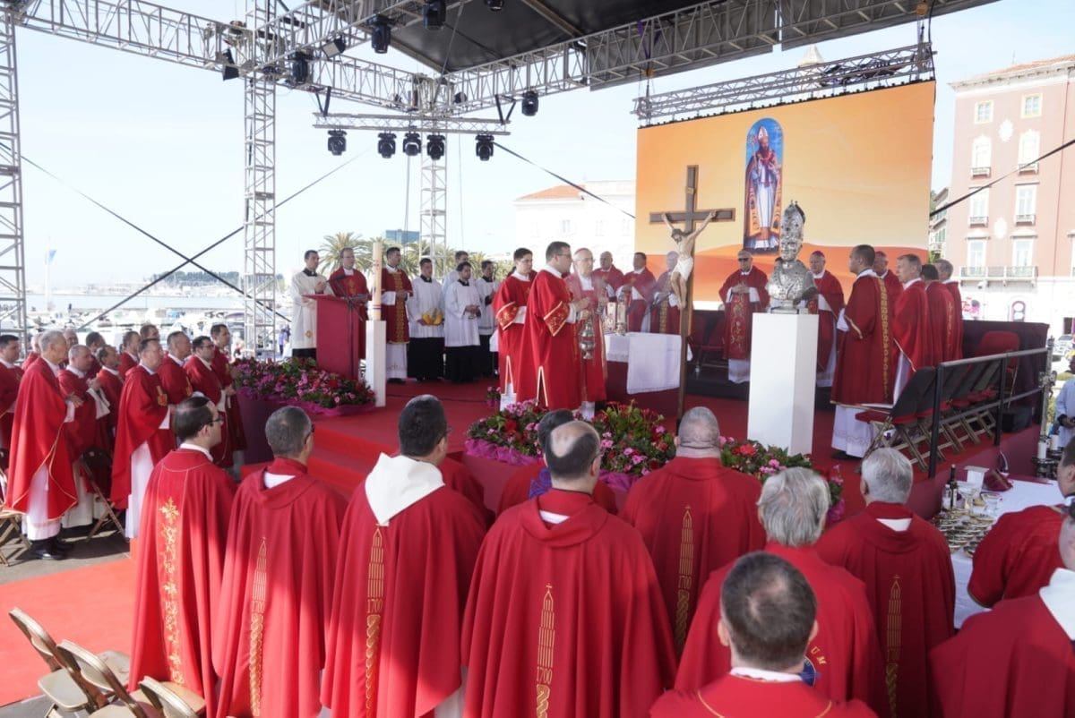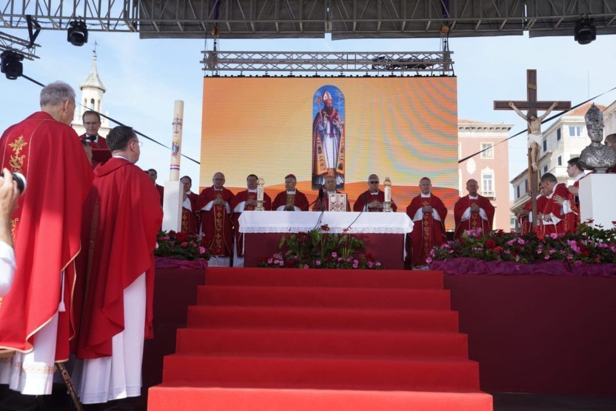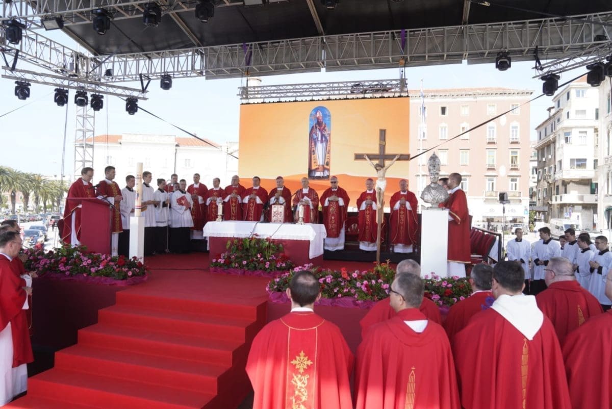 Preko Hrvojeve ulice procesija je stigla na Rivu gdje je održano svečano misno slavlje pred nekoliko tisuća ljudi. Slavlje je predvodio Apostolski upravitelj Splitsko-makarske nadbiskupije mons. Želimir Puljić.