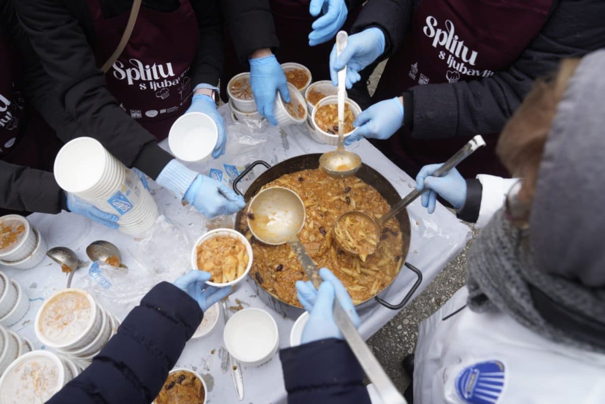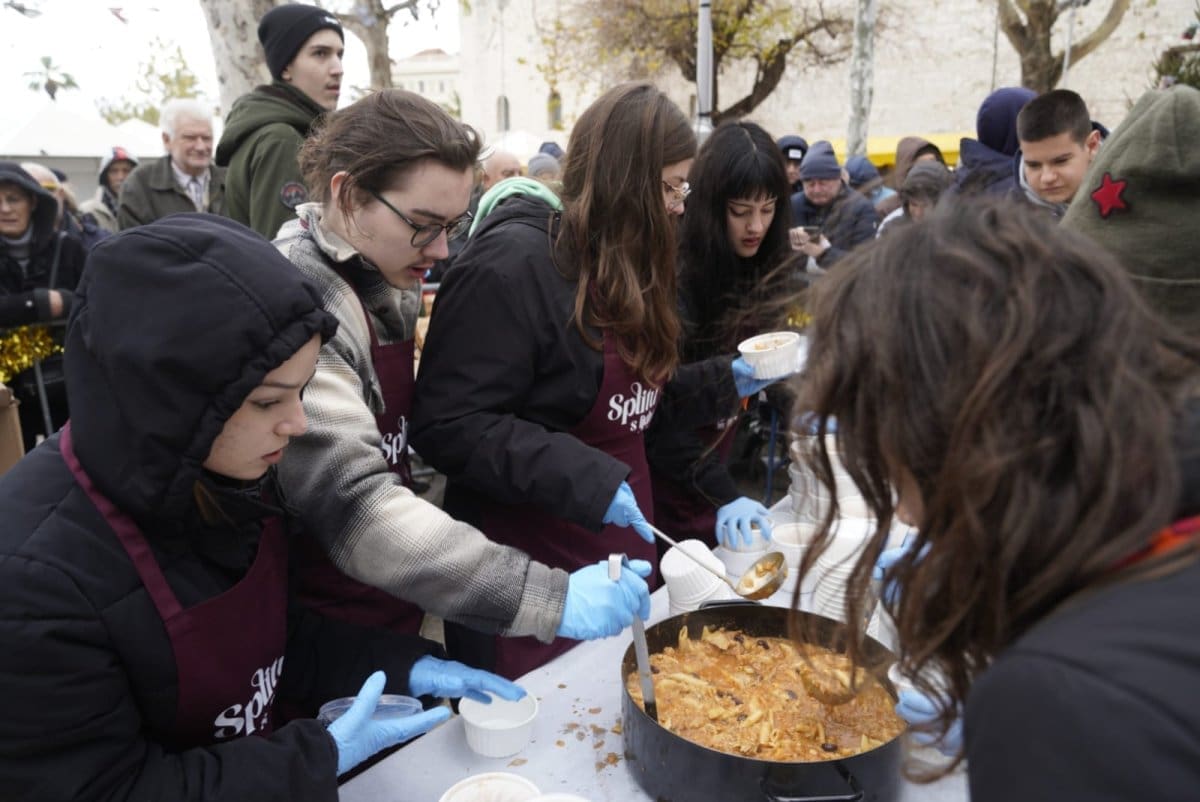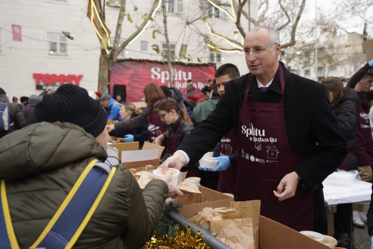 "Svima vam želim sretan Božić. Ove blagdane provedite u miru", kratko je prilikom podjele hrane kazao gradonačelnik Puljak. Organizatori su Grad Split, TZ grada Splita i TZ Splitsko-dalmatinske županije, uz podršku Norveškog veleposlanstva u Republici Hrvatskoj.
