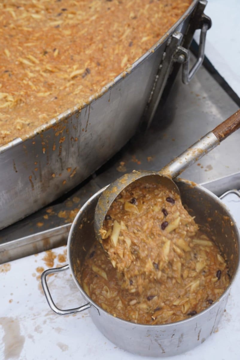 Podjela 5.000 porcija bakalara i fritula započela je jutros u 11 sati, a u programu su sudjelovali Gradski zbor Brodosplit i Grupa Providenca. Nadodajmo da je za veliku teću je utrošeno 250 kila bakalara. Hranu su dijeli gradonačelnik Grada Splita Ivica Puljak i njegova supruga Marijana, dogradonačelnici Bojan Ivošević i Antonio Kuzmanić, predsjednik GV-a Željko Domazet, gradski vijećnik Damir Barbir, direktorica TZ Splita Alijana Vukšić...