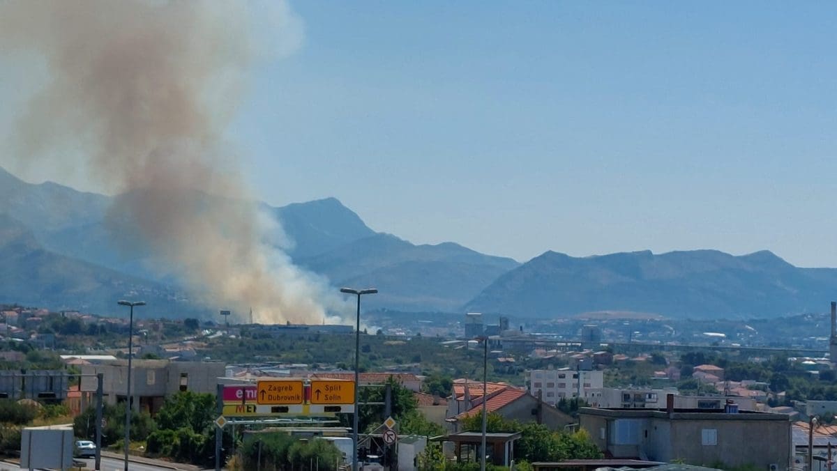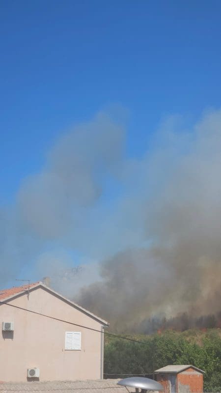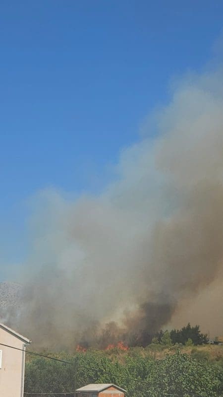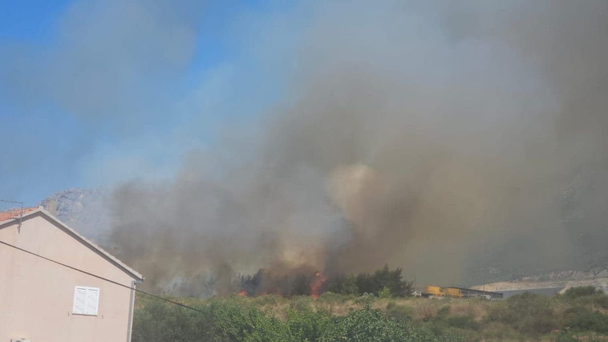 Na terenu su sve kaštelanske vatrogasne snage. Vatra trenutno ne ugrožava ljude i imovinu.