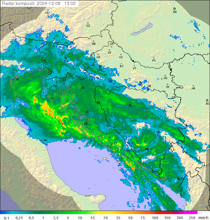 Radarska snimka DHMZ-a otkriva da iz smjera mora prema Lici pristižu nove oborine.