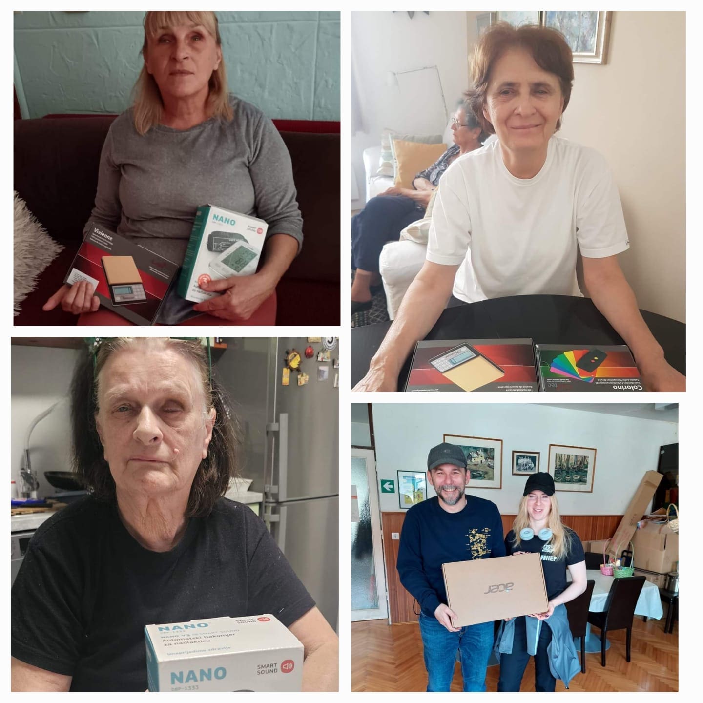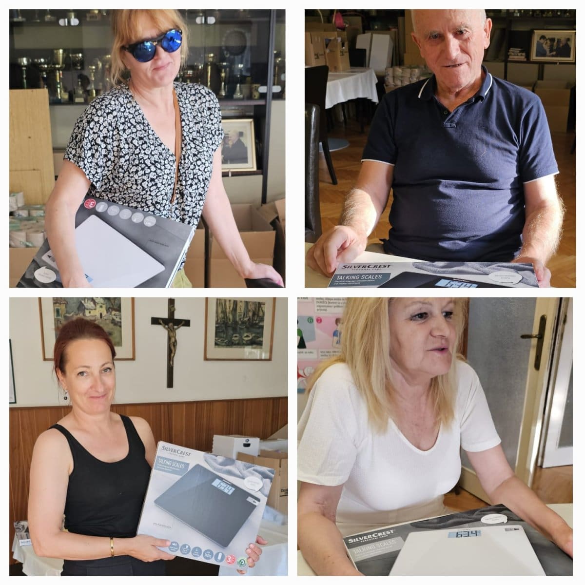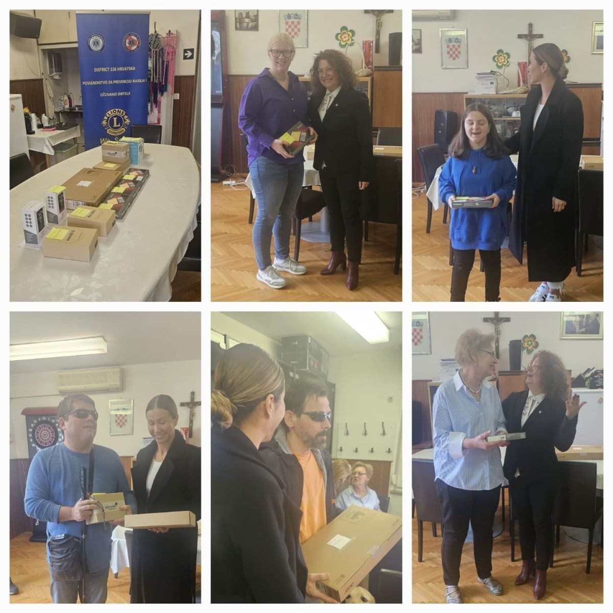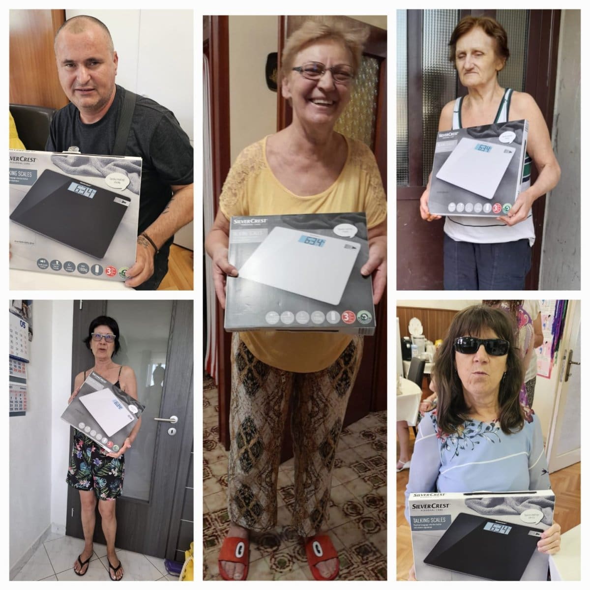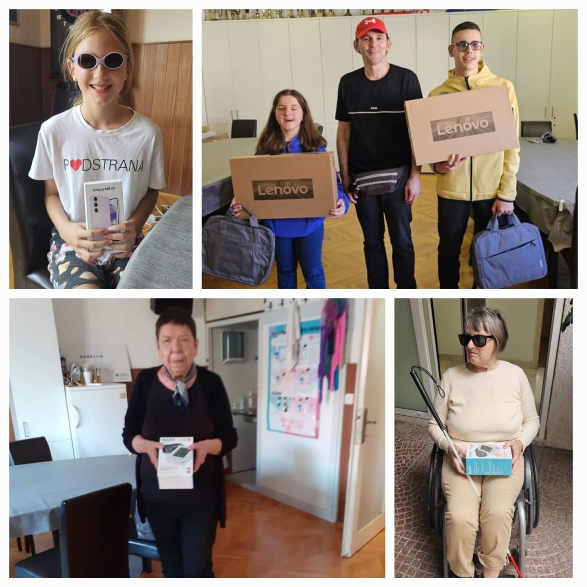 Tijekom 2024. godine zahvaljujući donacijama osigurana su 72 pomagala ukupne vrijednosti od 13.735,25 eura. Donirano je, između ostalog, 21 govorna osobna vaga, 17 govornih tlakomjera, 7 kuhinjskih vaga, 5 toplomjera, 5 laptopa te 4 mobitela dizajnirana za slijepe osobe.