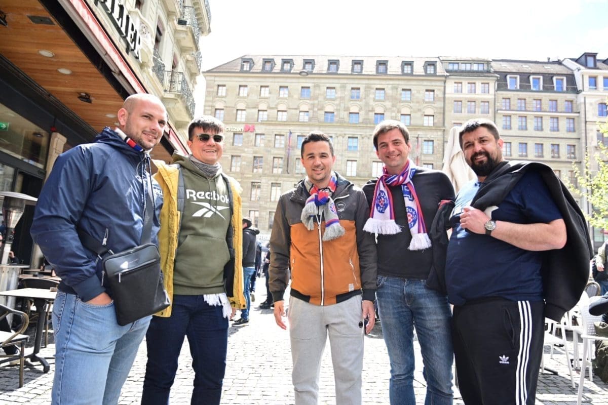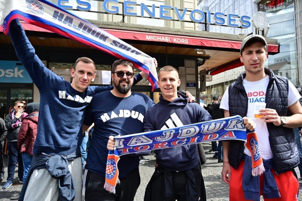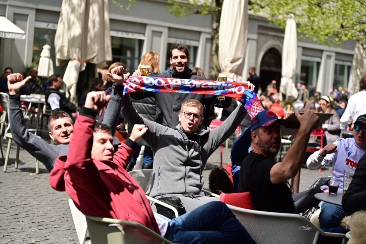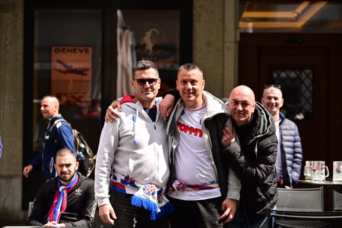 Navijači Bilih od ranog prijepodneva okupirali su sami centar švicarskog grada, pjesma se čuje iza svakog kantuna, a stigli su i harmonikaši. Atmosfera na ženevskim ulicama odiše hajdučkim pjesmama i navijanjem; zagrijavaju se navijači za do sada neviđeno finale Lige prvaka.