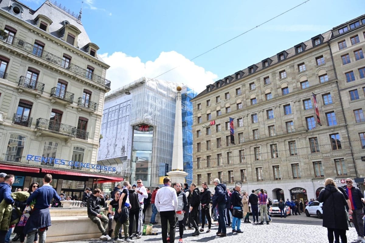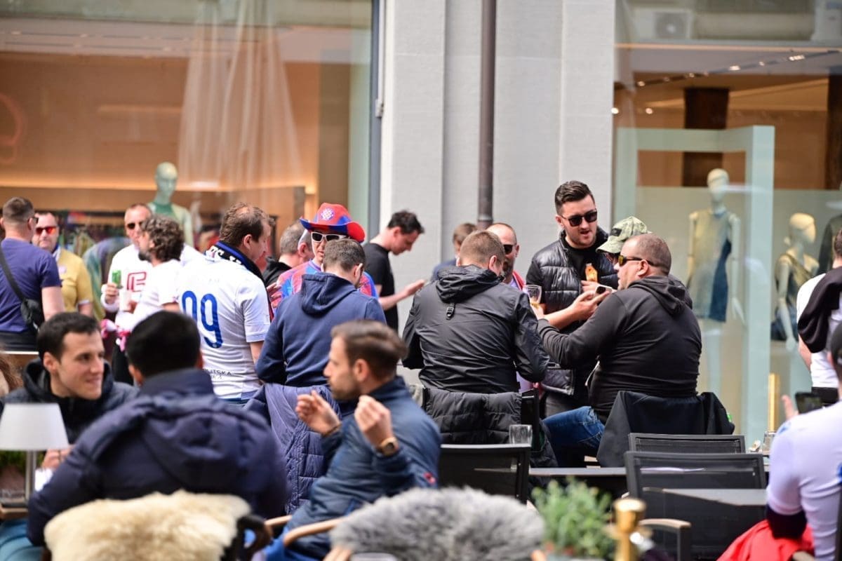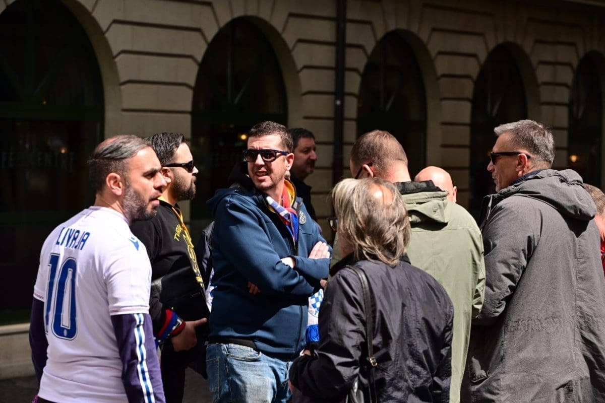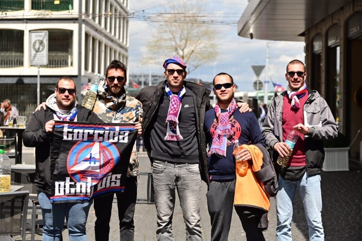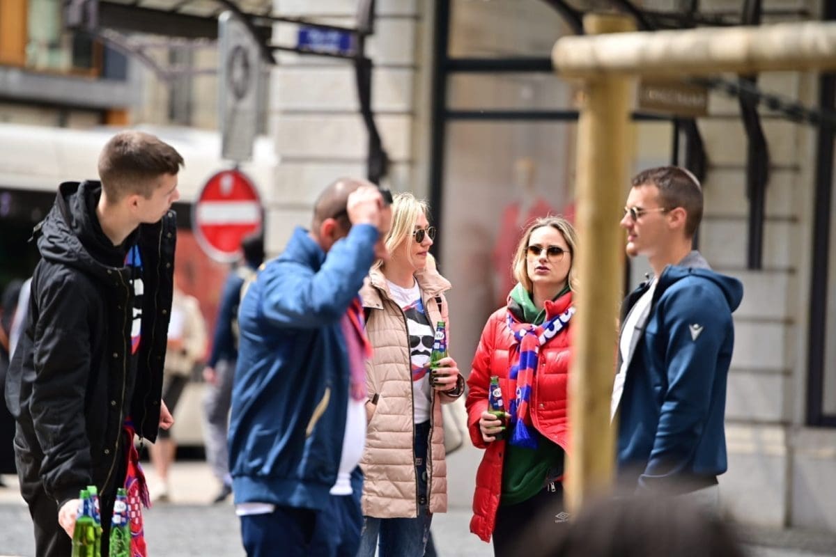 Navijači Bilih od ranog prijepodneva okupirali su sami centar švicarskog grada, pjesma se čuje iza svakog kantuna, a stigli su i harmonikaši. Atmosfera na ženevskim ulicama odiše hajdučkim pjesmama i navijanjem; zagrijavaju se navijači za do sada neviđeno finale Lige prvaka.