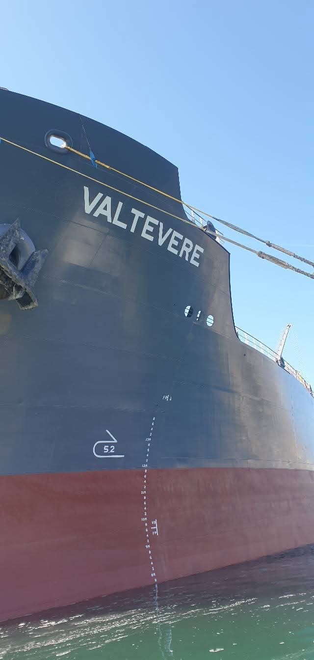 Na jednoj od fotografija vidljivo je ime broda Valtevere, dok druge prikazuju tanker uz obalu i zaštitne barijere postavljene na moru.
