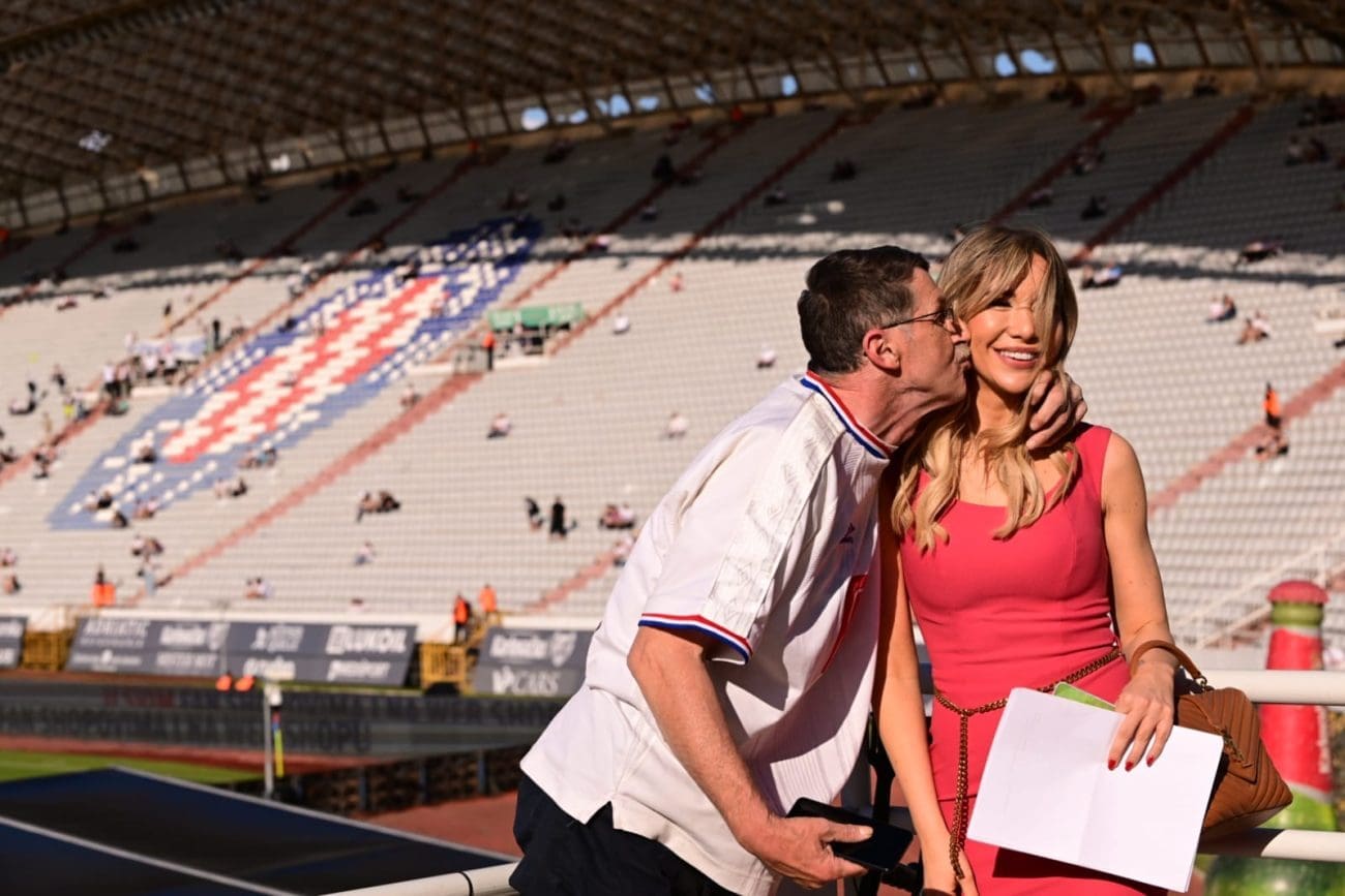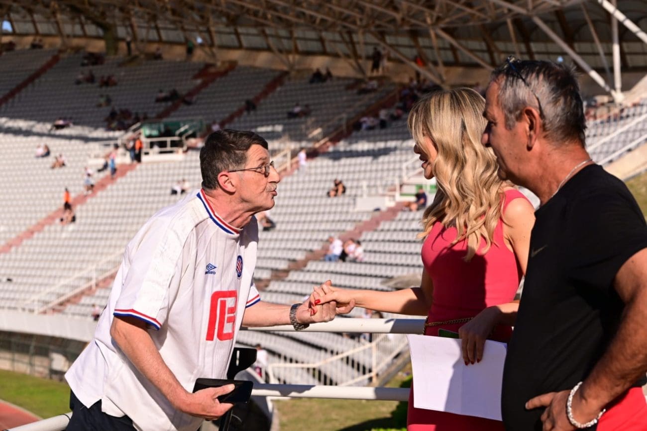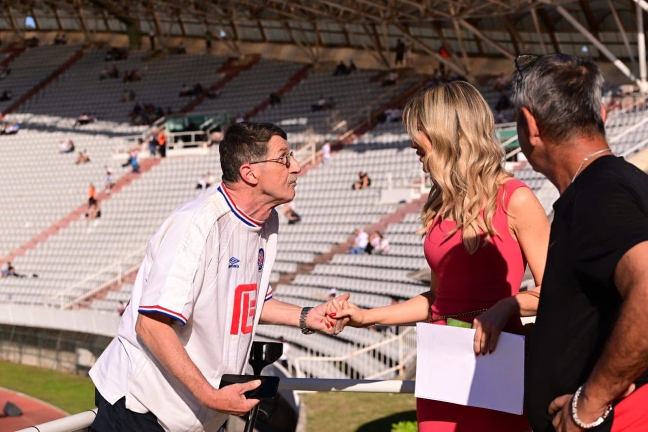 Jednom navijaču Hajduka se danas ostvario san - doduše ne onaj o osvajanju titule na punom Poljudu. Jedan hrabri navijač u Hajdukovom dresu uspio je prići voditeljici Valentini Miletić koja je na stadion stigla pred utakmicu s Rijekom.