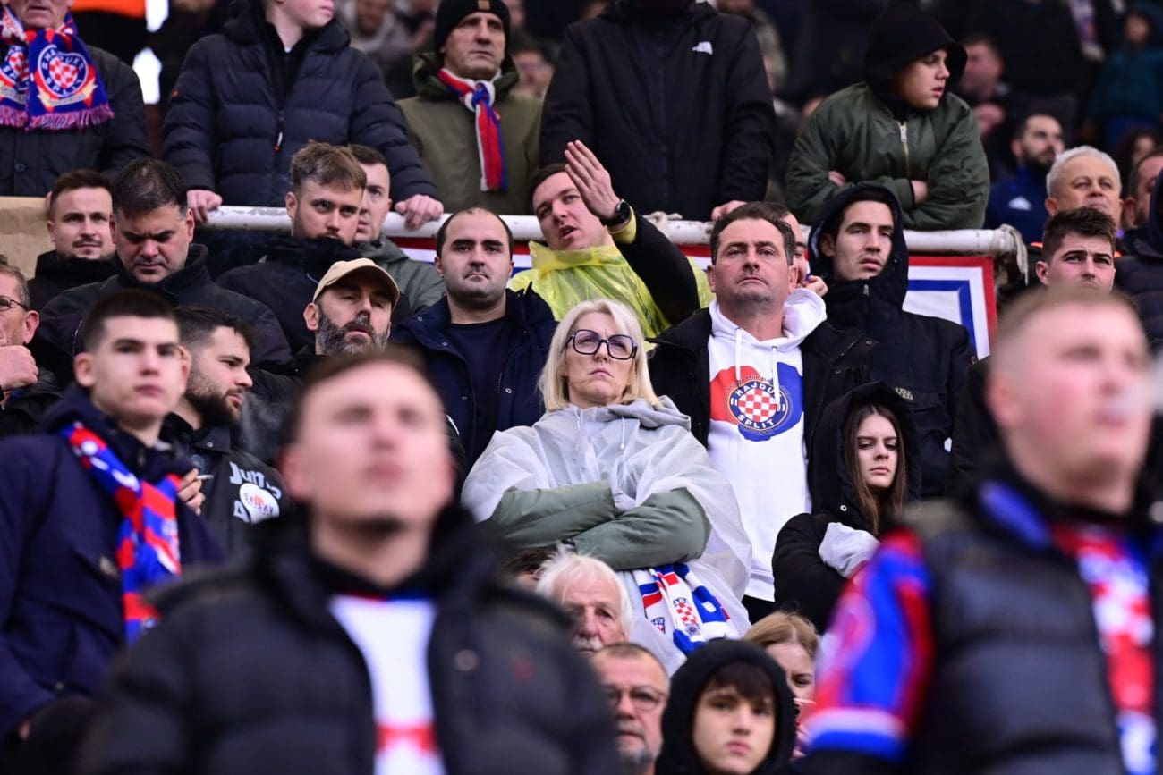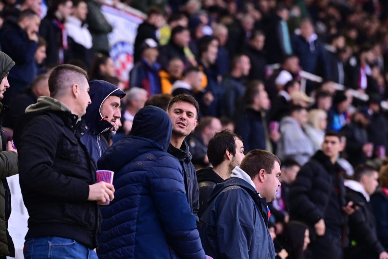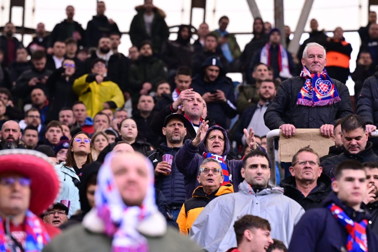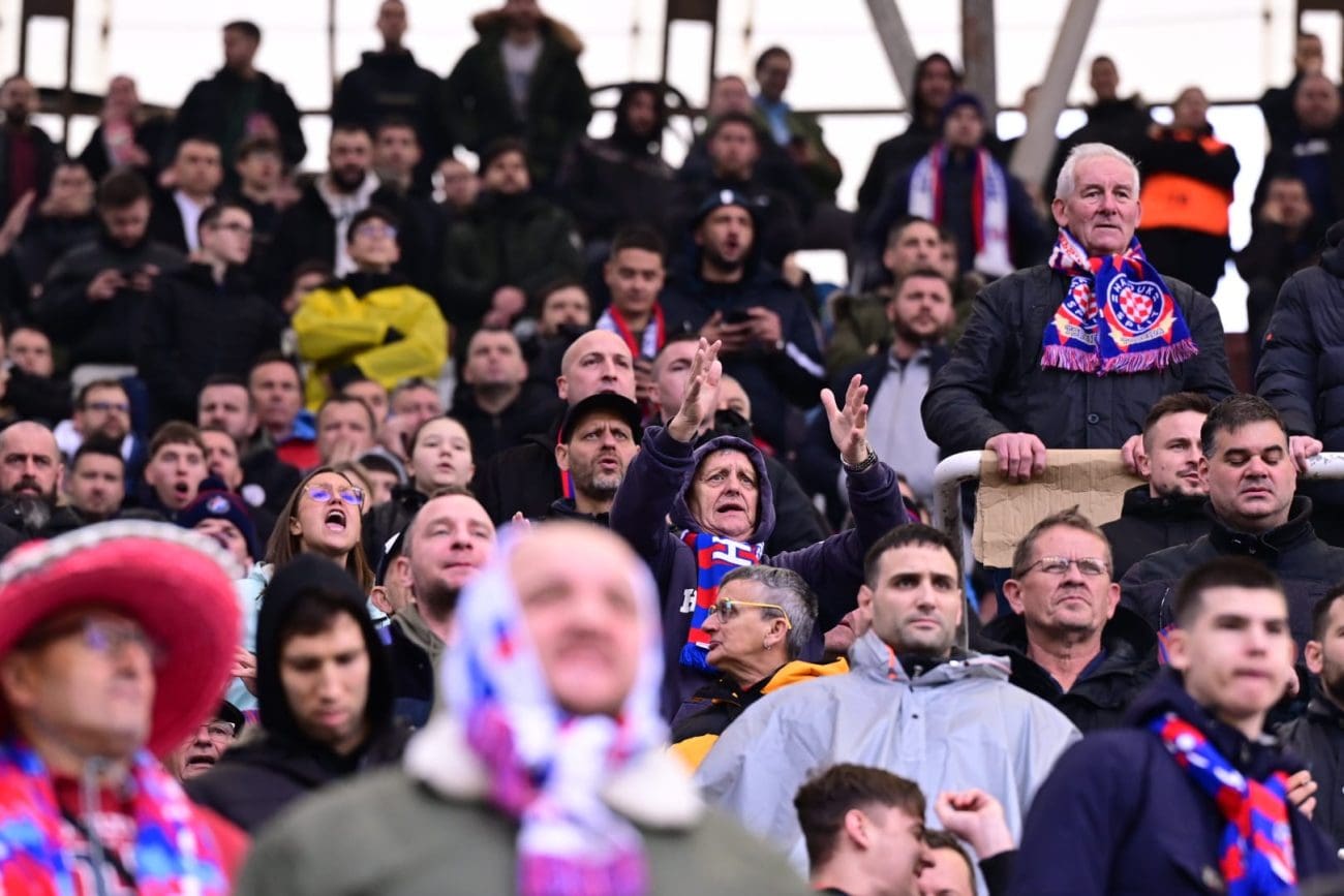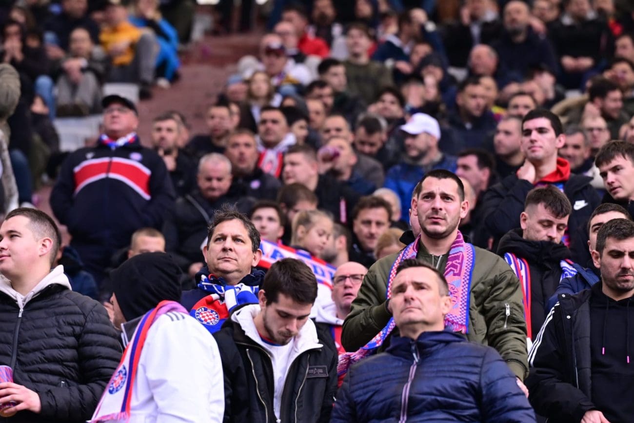 Vremenske prilike snažno utječu i na atmosferu na tribinama. Unatoč solidnom broju gledatelja koji su, bez obzira na jugo i kišu, došli na stadion, raspoloženje je vidljivo loše.
