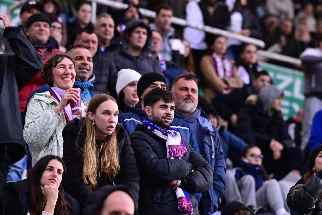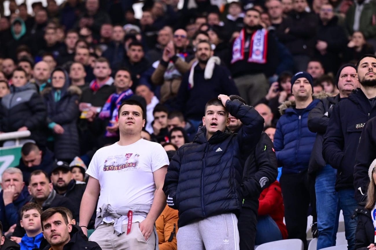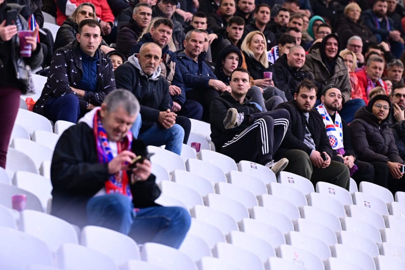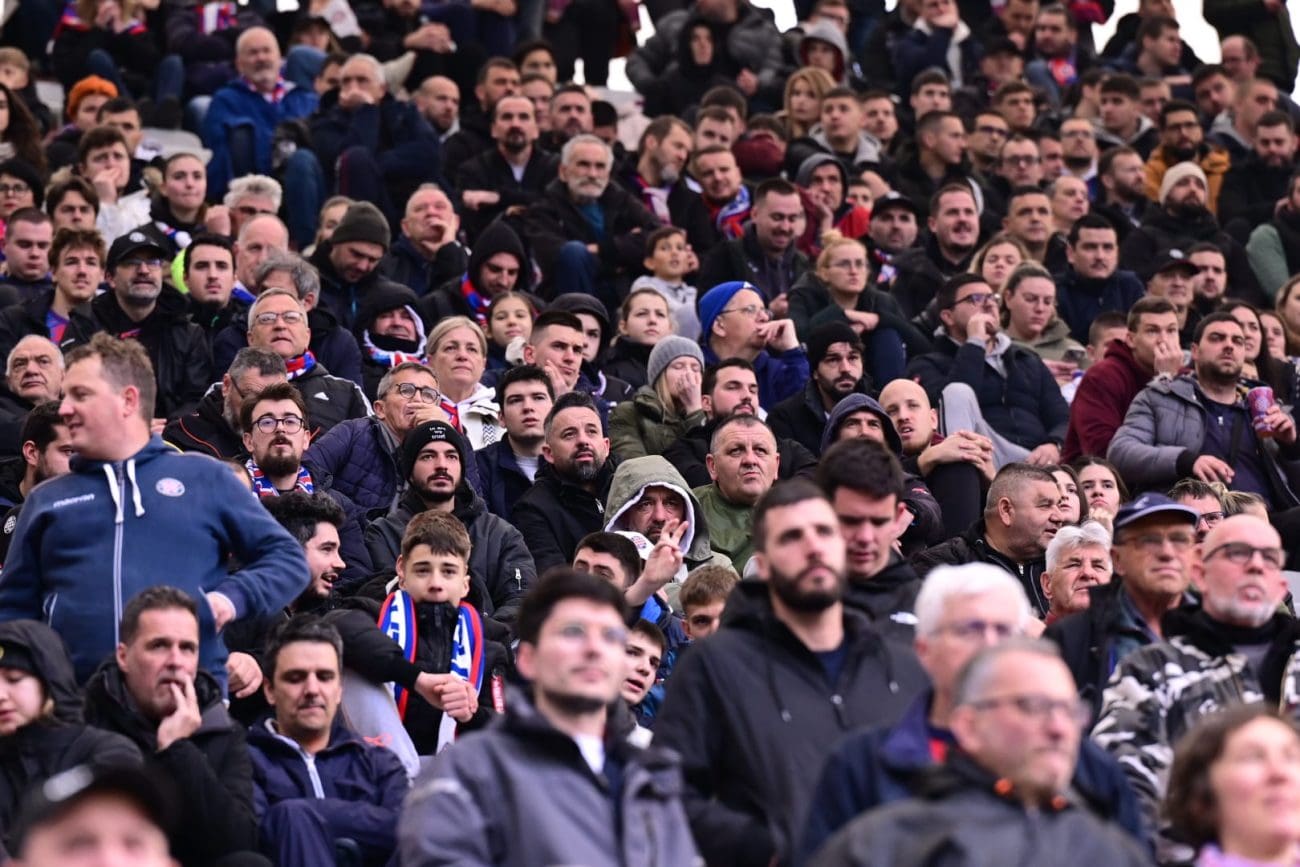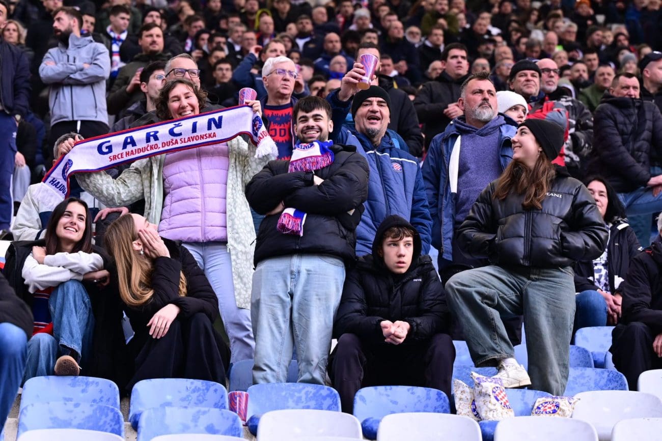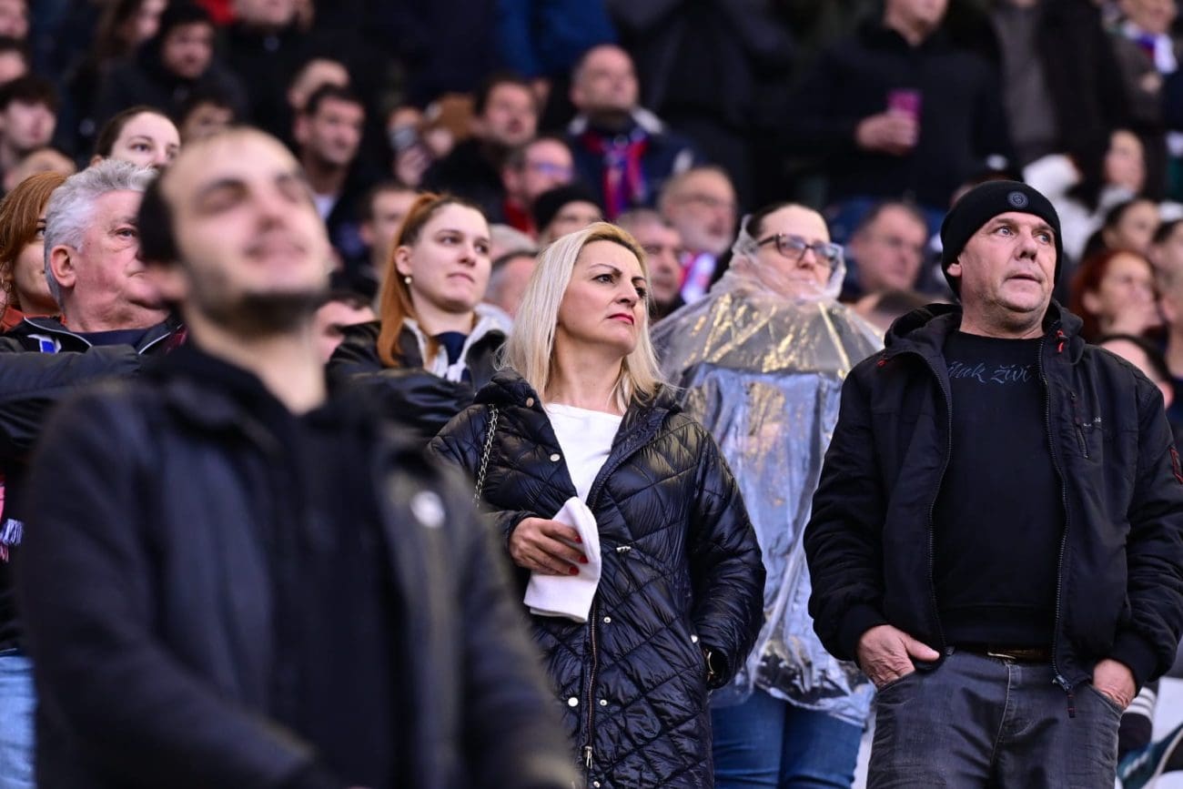Vremenske prilike snažno utječu i na atmosferu na tribinama. Unatoč solidnom broju gledatelja koji su, bez obzira na jugo i kišu, došli na stadion, raspoloženje je vidljivo loše.