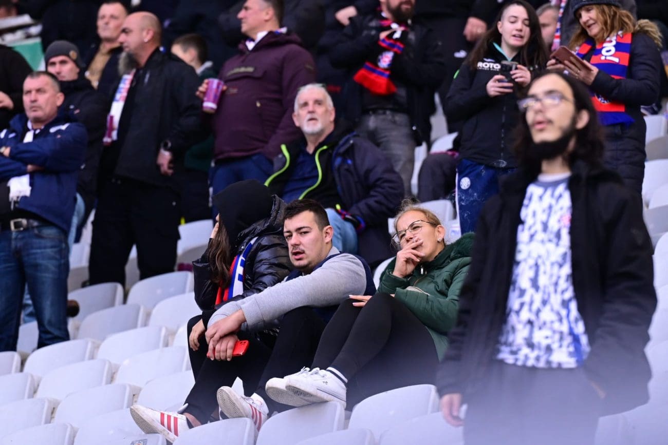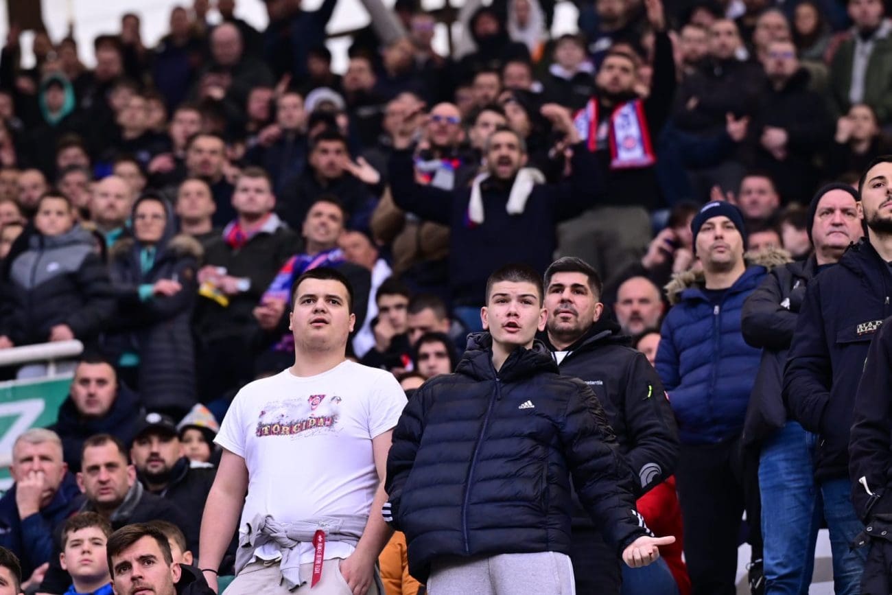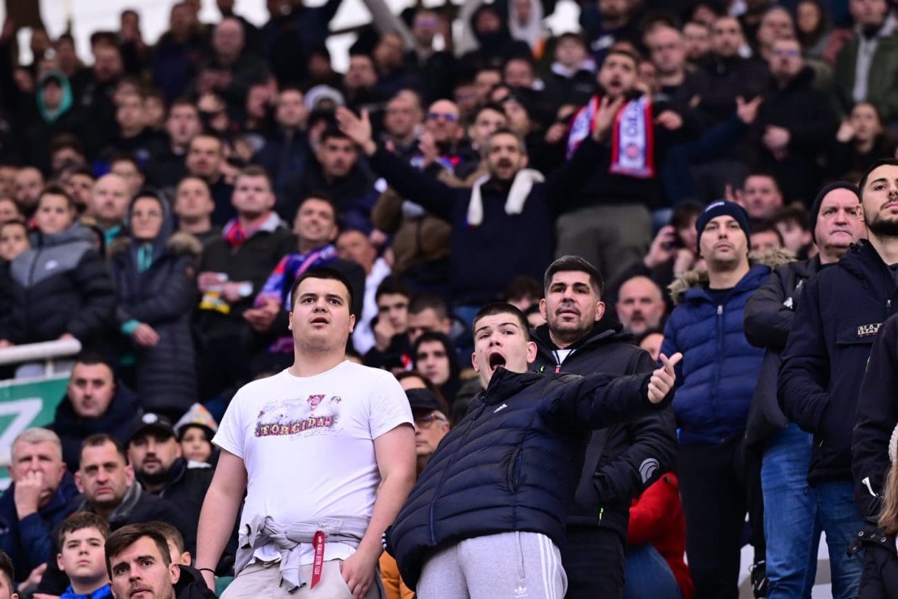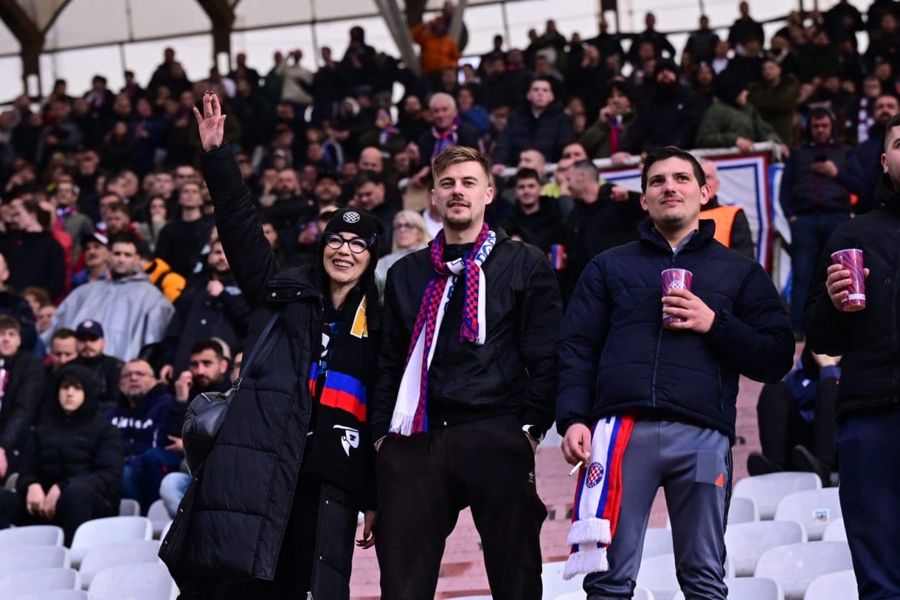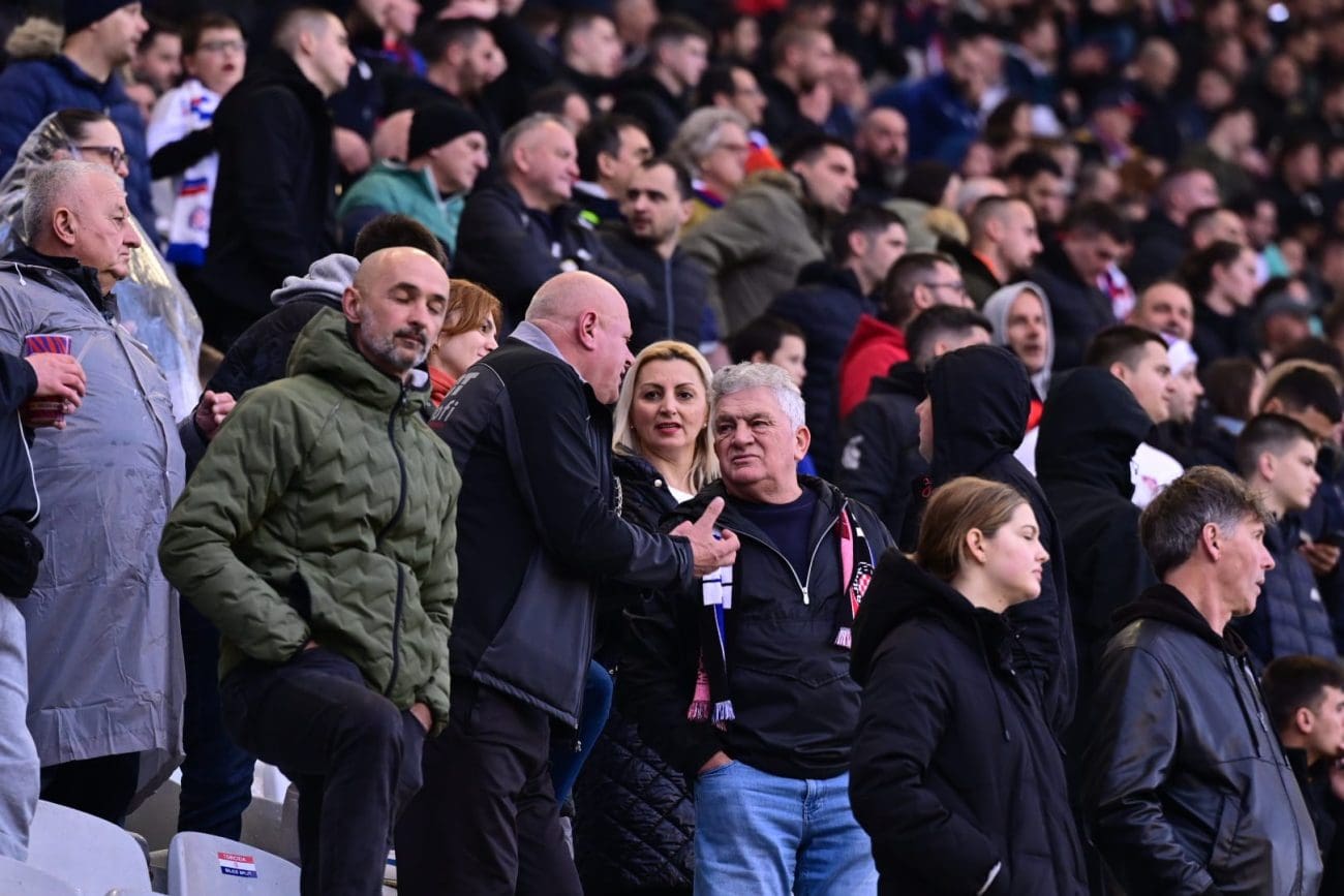 Vremenske prilike snažno utječu i na atmosferu na tribinama. Unatoč solidnom broju gledatelja koji su, bez obzira na jugo i kišu, došli na stadion, raspoloženje je vidljivo loše.