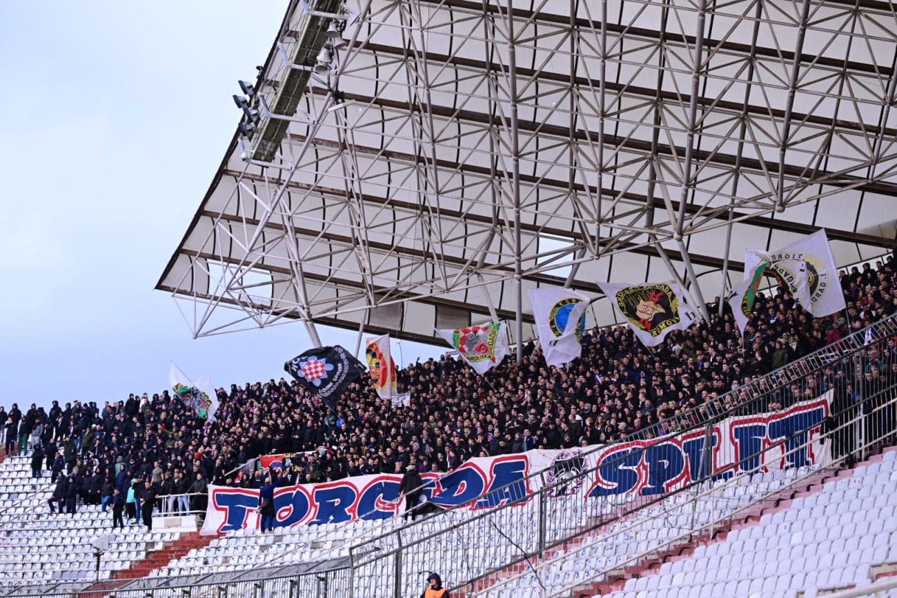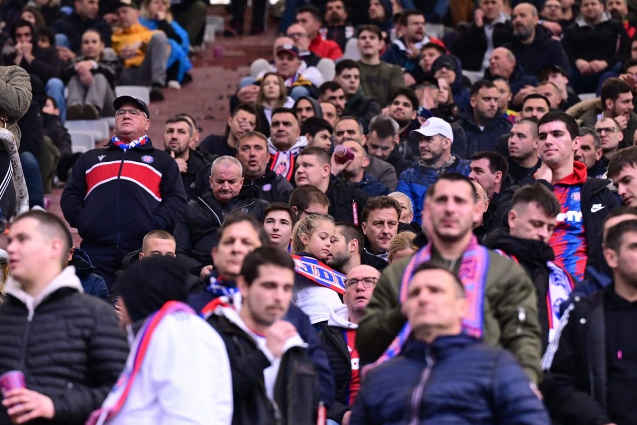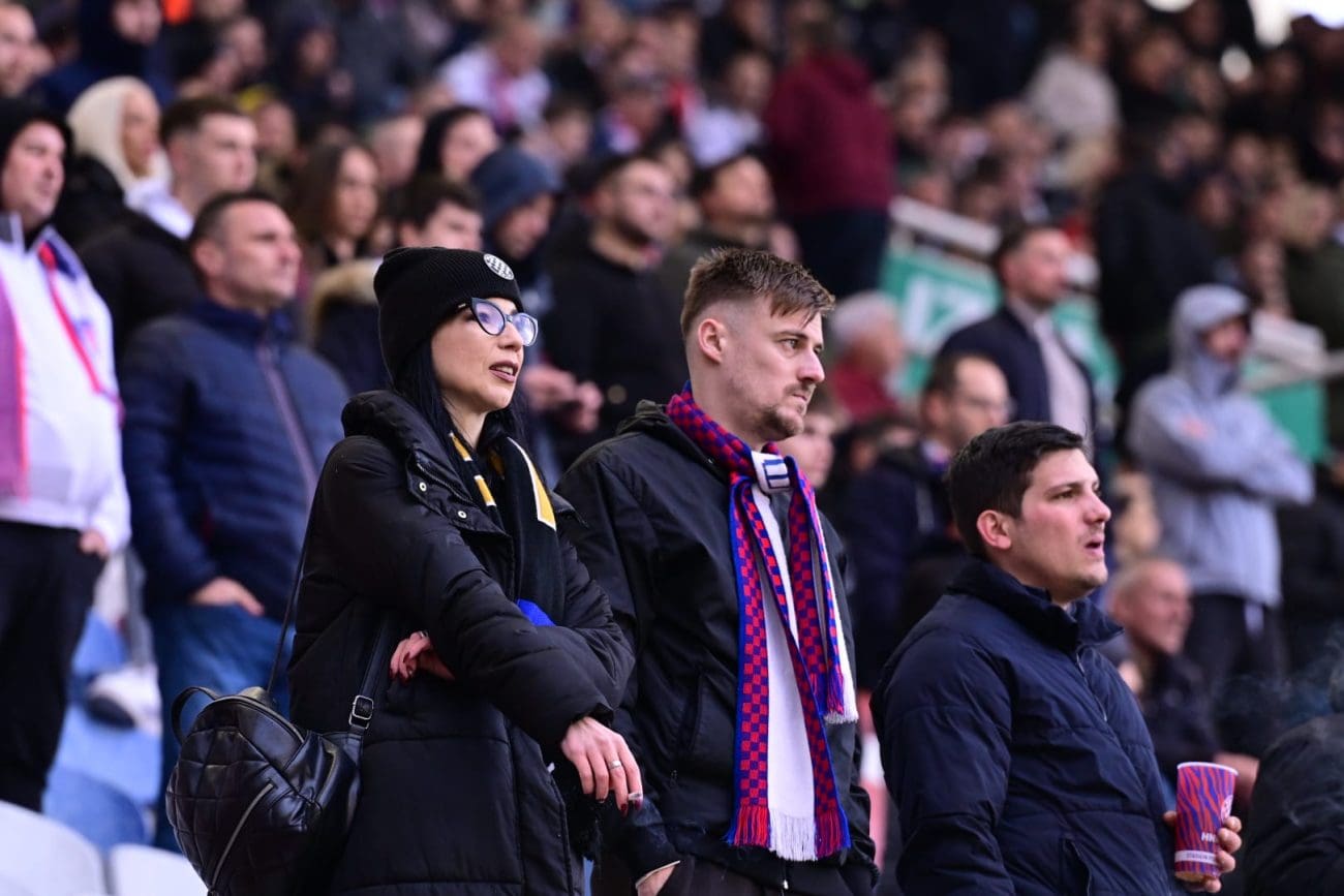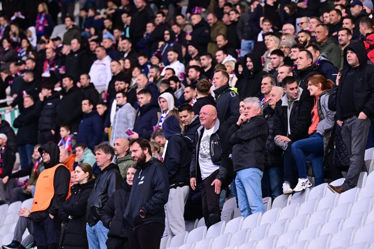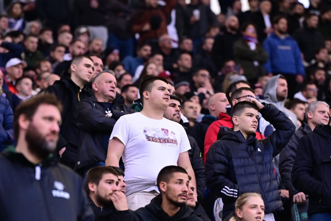 Vremenske prilike snažno utječu i na atmosferu na tribinama. Unatoč solidnom broju gledatelja koji su, bez obzira na jugo i kišu, došli na stadion, raspoloženje je vidljivo loše.