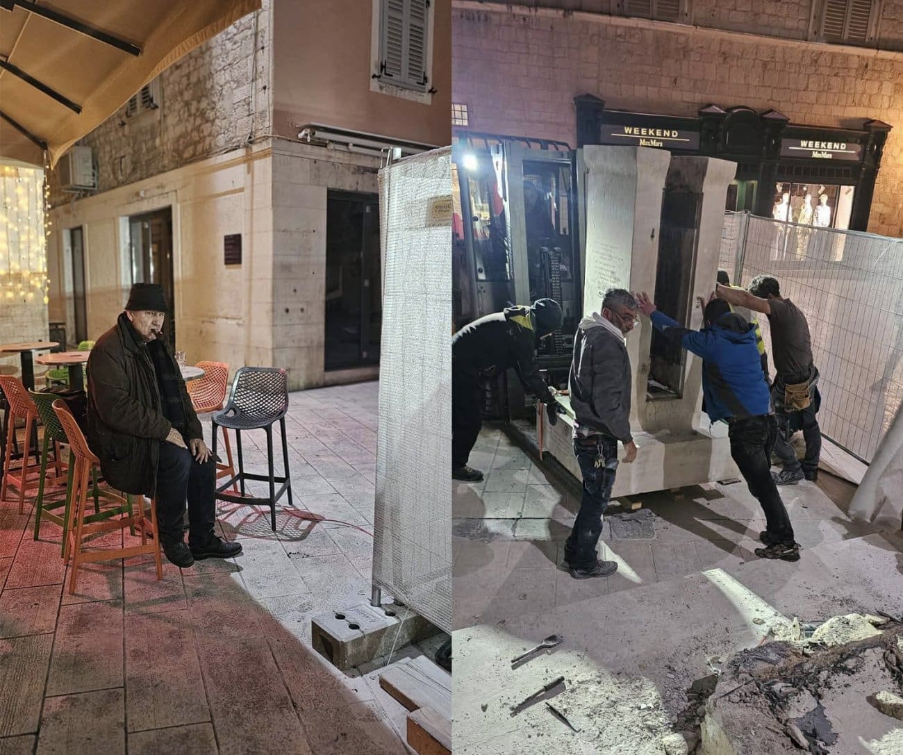 Tijekom radova, Kovačić je stigao na Pjacu i, vidjevši da se njegovo djelo uklanja, pozvao policiju. Zamjenik gradonačelnika, Bojan Ivošević, nadzirao je proces uklanjanja.