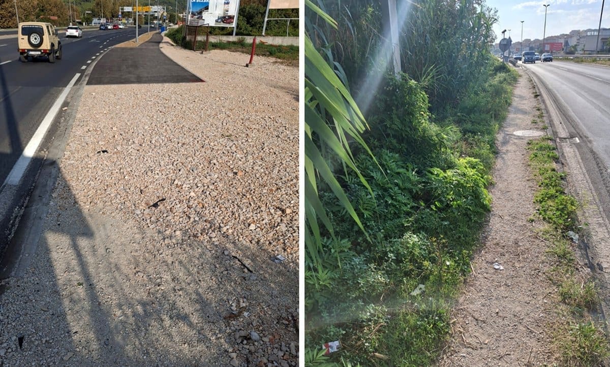 Dio nogostupa od raskrižja Stobreč-Podstrana do ulaza u pothodnik Šine-Stobreč nakon radova na proširenju raskrižja na Jadranskoj magistrali sa stobrečke strane ostao je kozja staza.