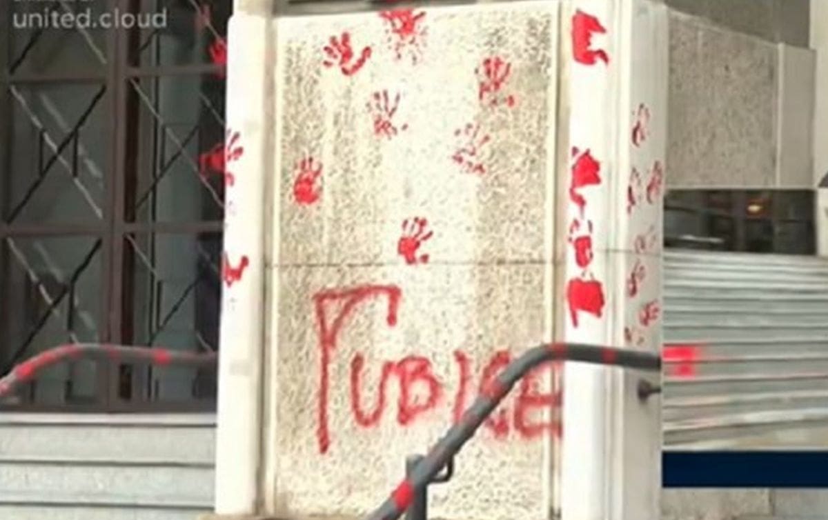 "Krvave ruke", "štite ubojice", "vi ste odgovorni", "mi vas plaćamo", poruke su koje su ispisali po zidovima institucija, javlja Index.