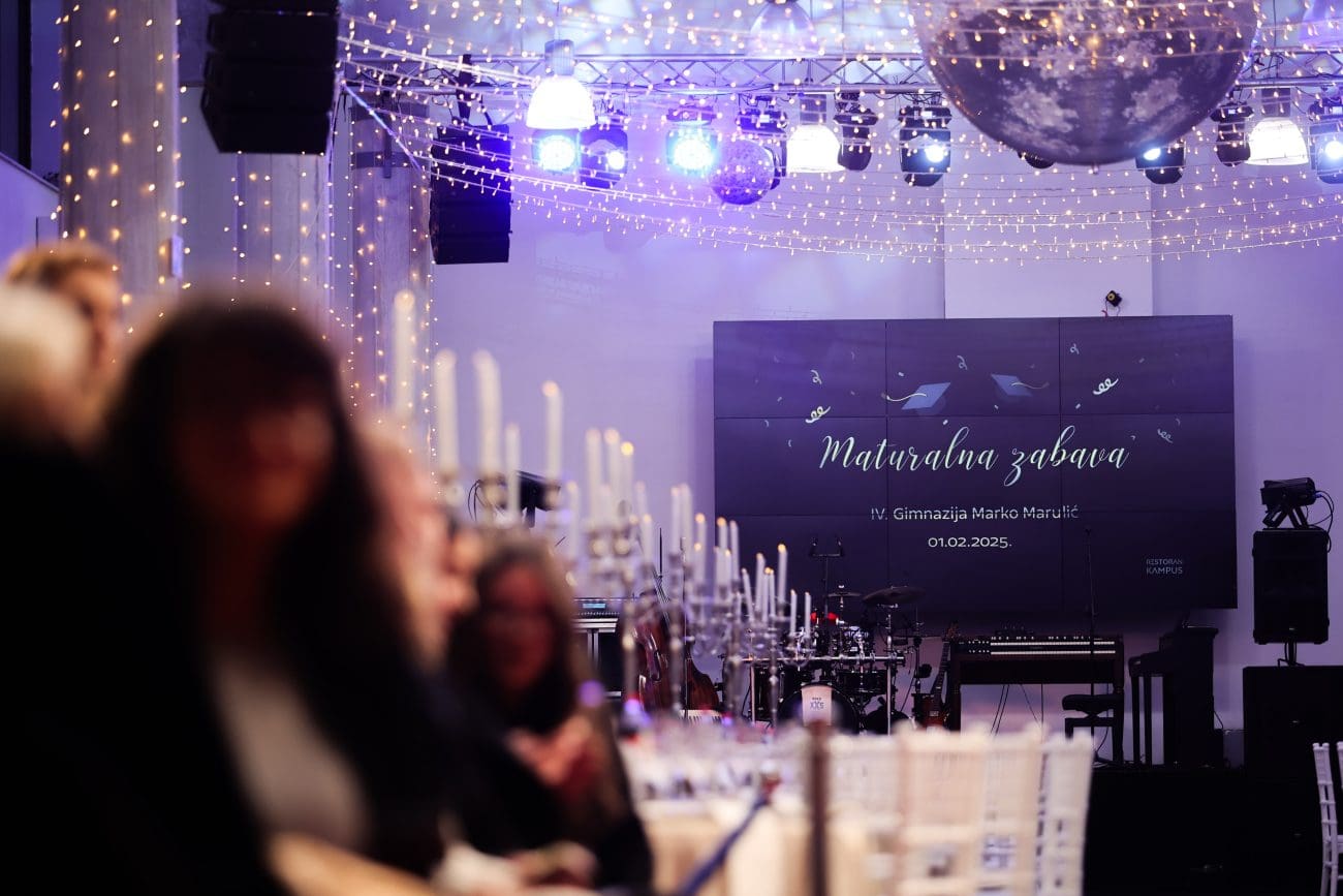 Maturanti IV. gimnazije Marko Marulić i njihovi profesori prošetali su spektakularnim špalirom u idiličnom ambijentu restorana Kampus i na taj su način započeli najvažniju večer u svom dosadašnjem životu.