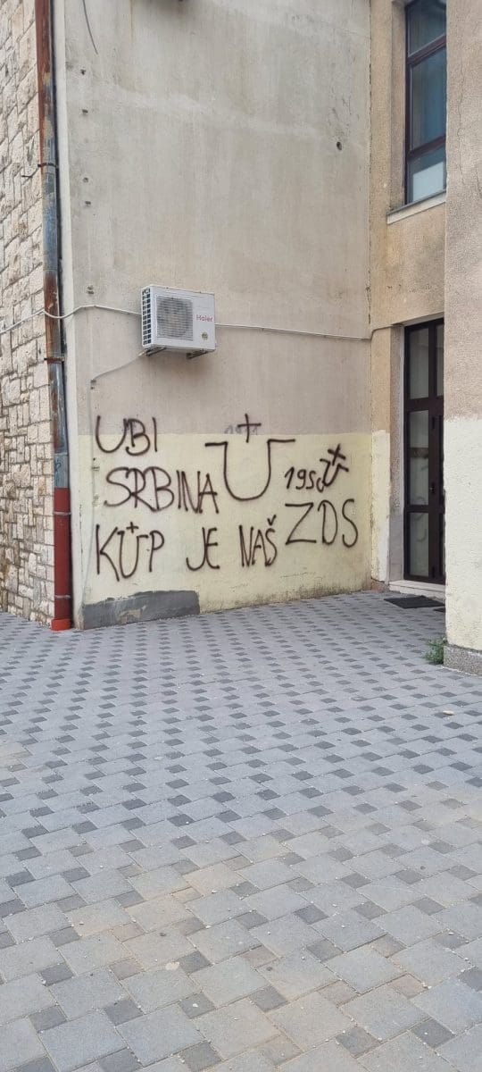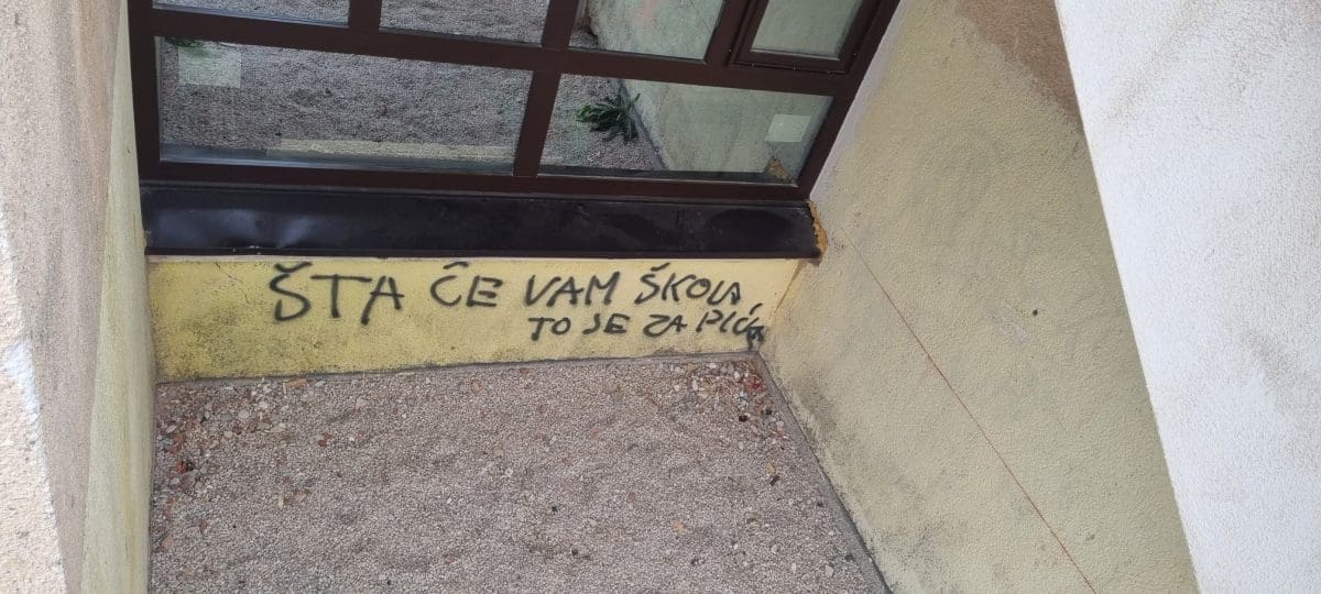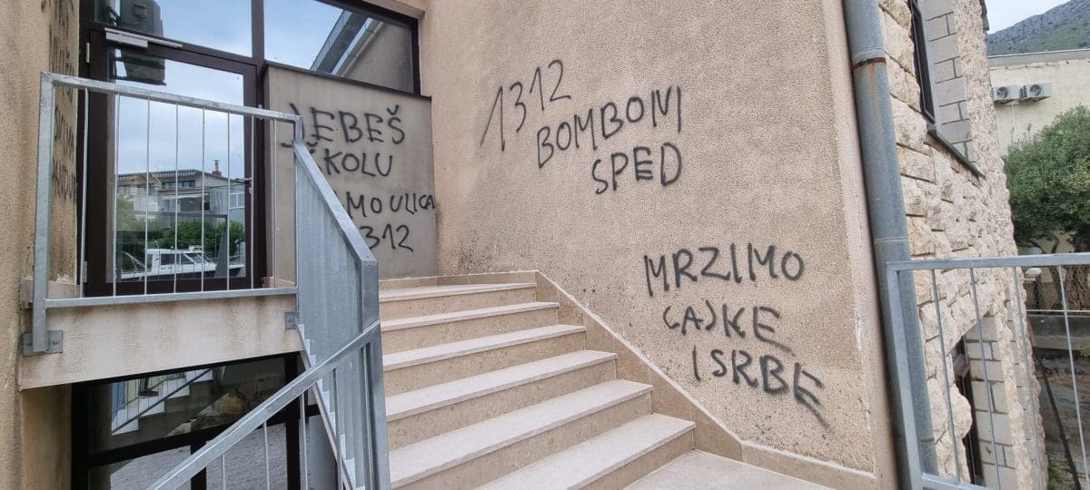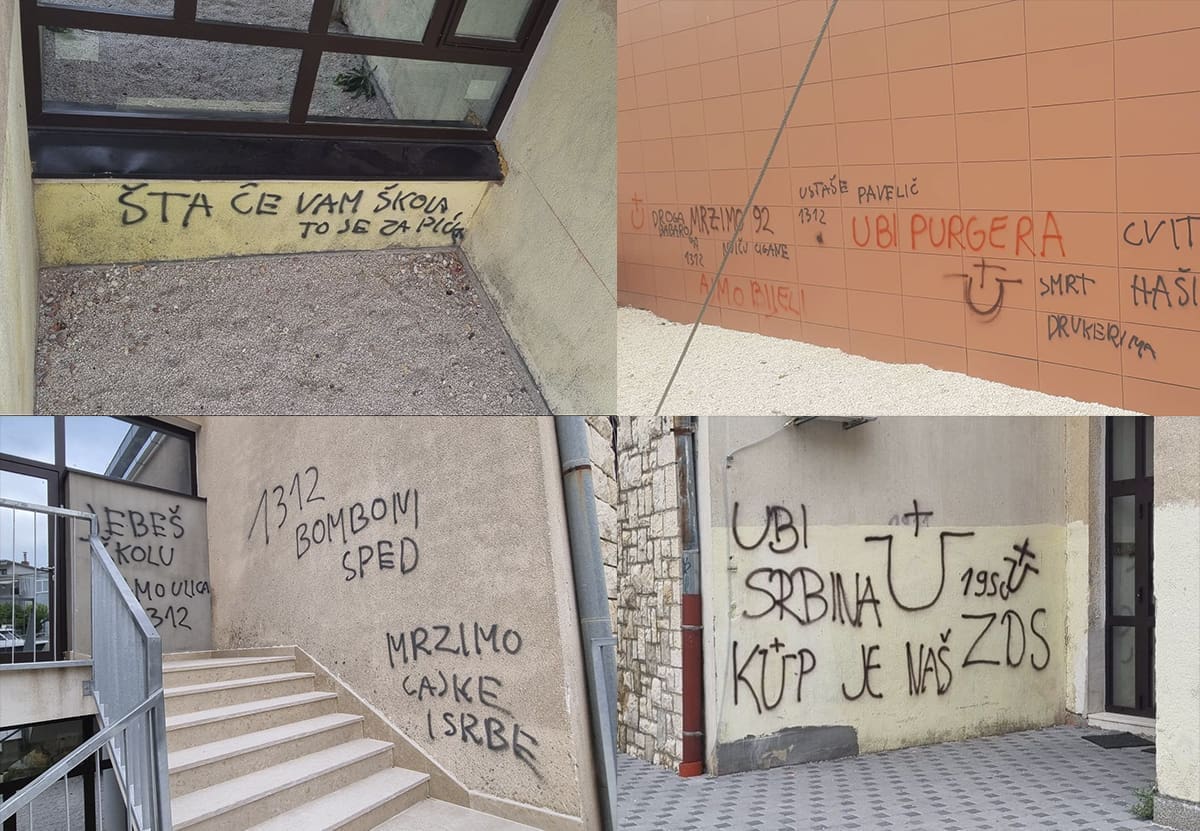 U Facebook grupi Pokrenimo Dugi Rat objavljene su fotografije Osnovne škole Jesenice koja je išarana grafitima punim mržnje.