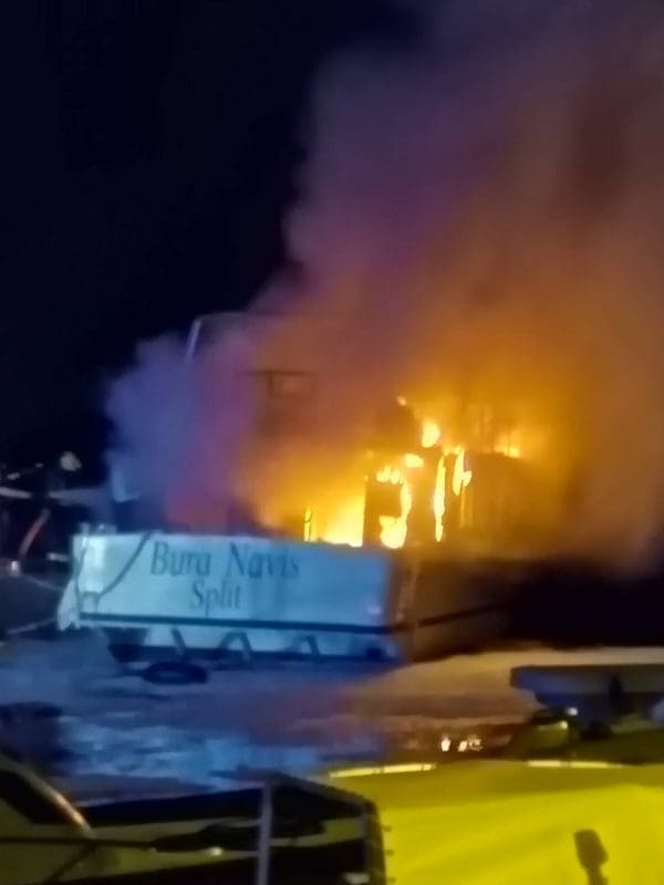 Brod dužine oko 15 metara planuo je u lučici, a požar je lokaliziran u 4.13 sati.