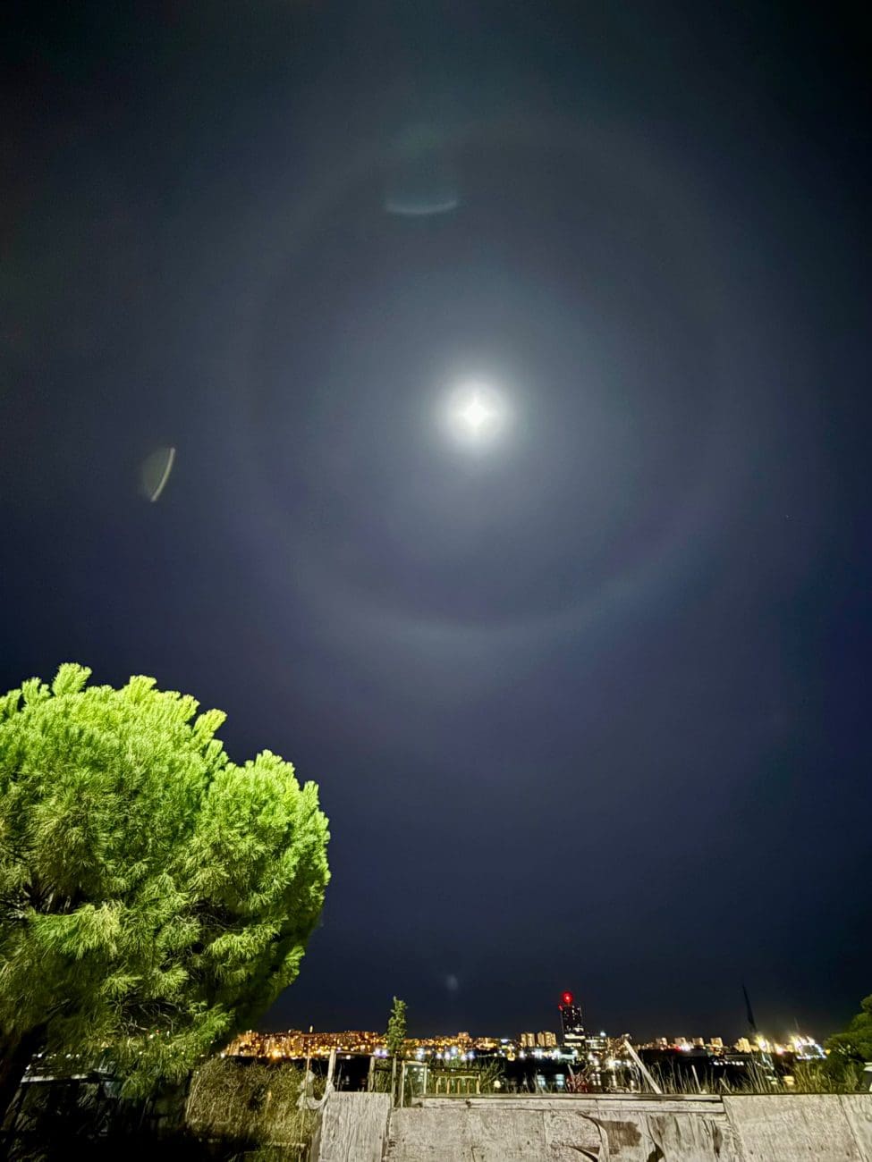 Ponedjeljak navečer obilježila je i upečatljiva pojava na nebu, svjetlosni prsten oko Mjeseca, poznat kao Halo mjesec.