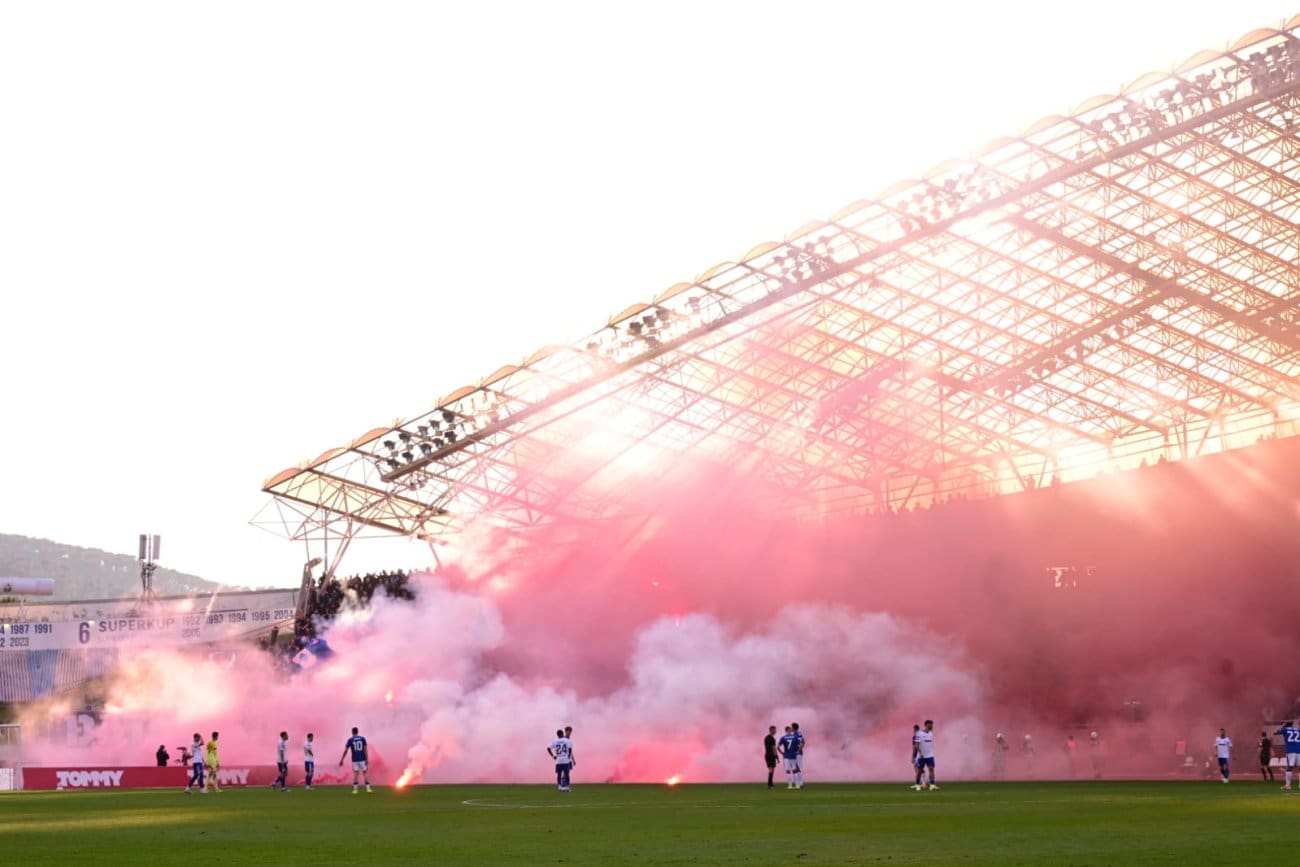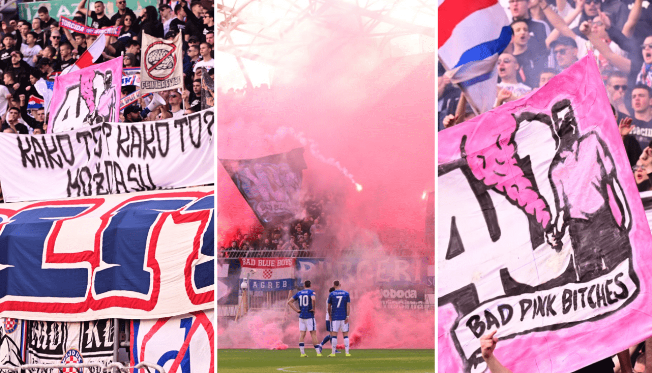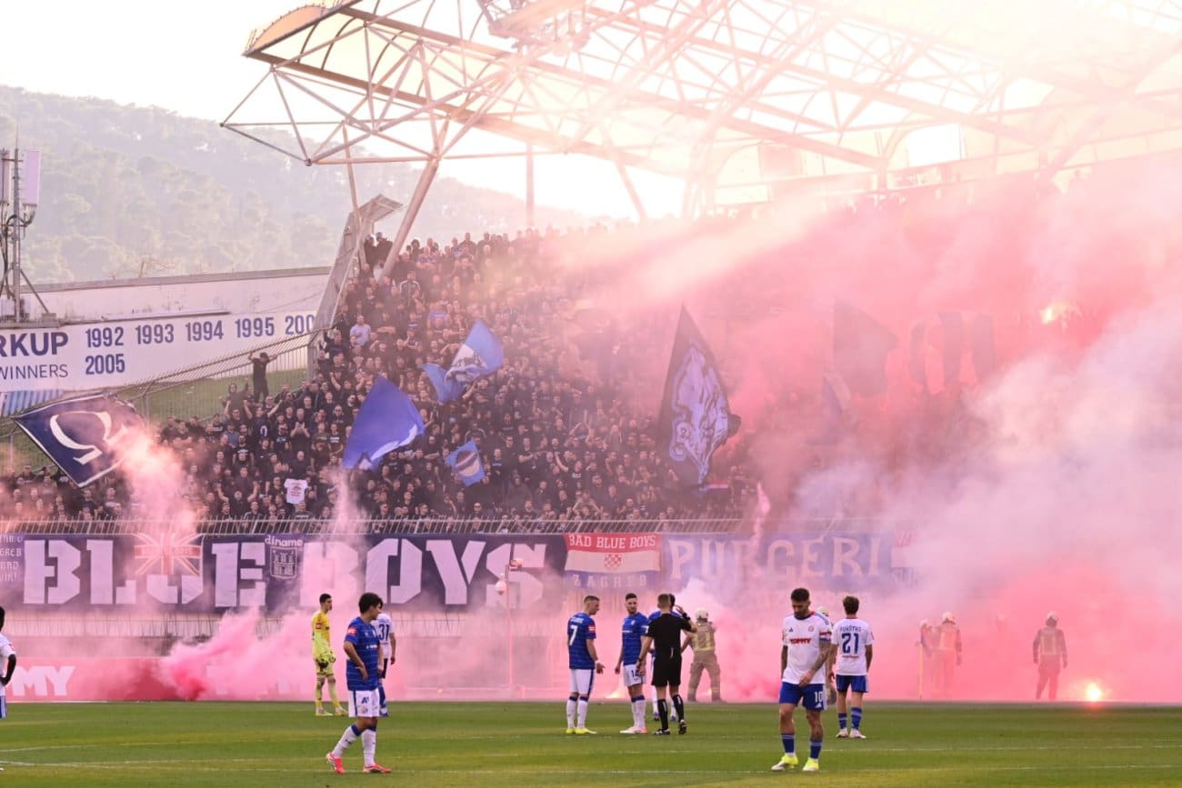 Tijekom derbija Hajduka i Dinama na Poljudu dogodila se nesvakidašnja scena na tribinama. Za vrijeme bakljade navijača Dinama na južnom dijelu stadiona iznenada se pojavio ružičasti, odnosno pink dim, što je izazvalo reakciju na suprotnoj strani stadiona.