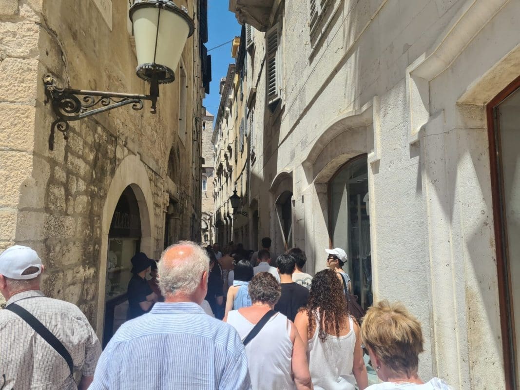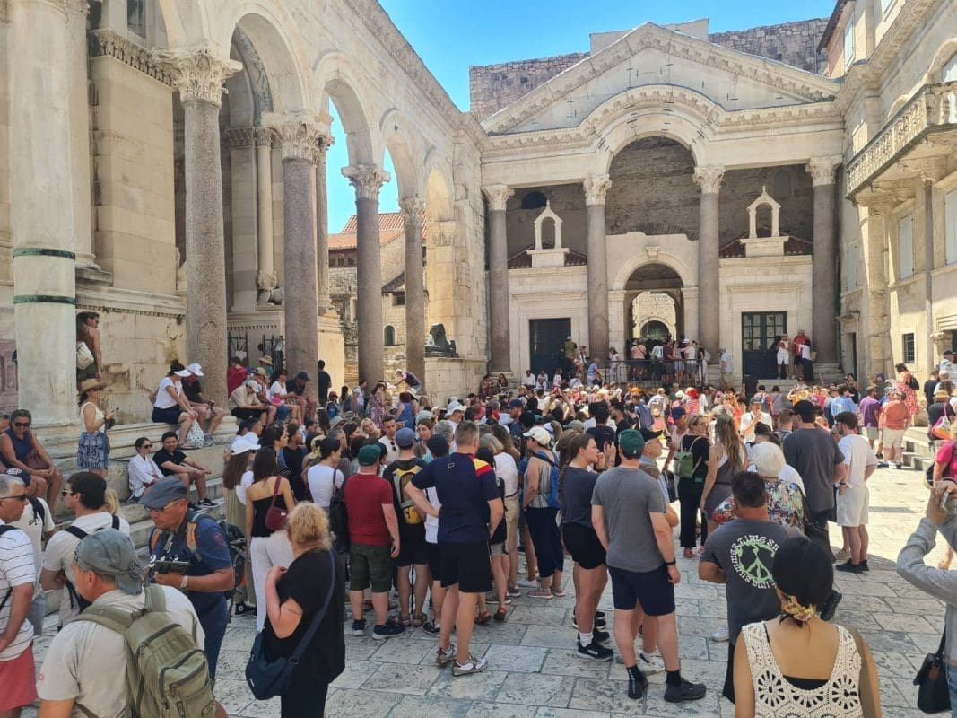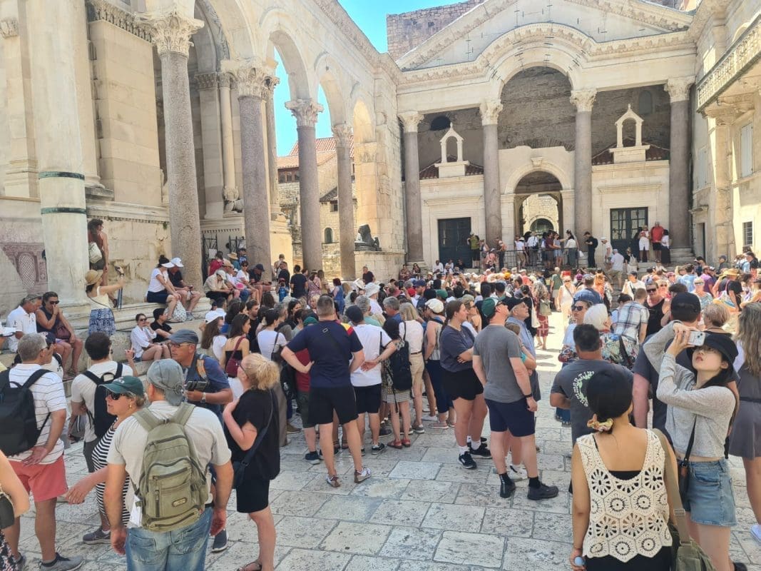Najava rekordne sezone vidljiva je u svakom kutku grada. Uz vedro i vruće vrijeme, nekoliko tisuća ljudi 'okupiralo' je centar grada, a najveća je gužva u Dioklecijanovoj palači.