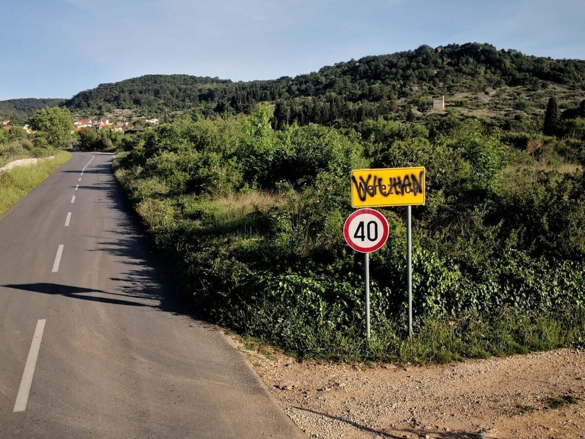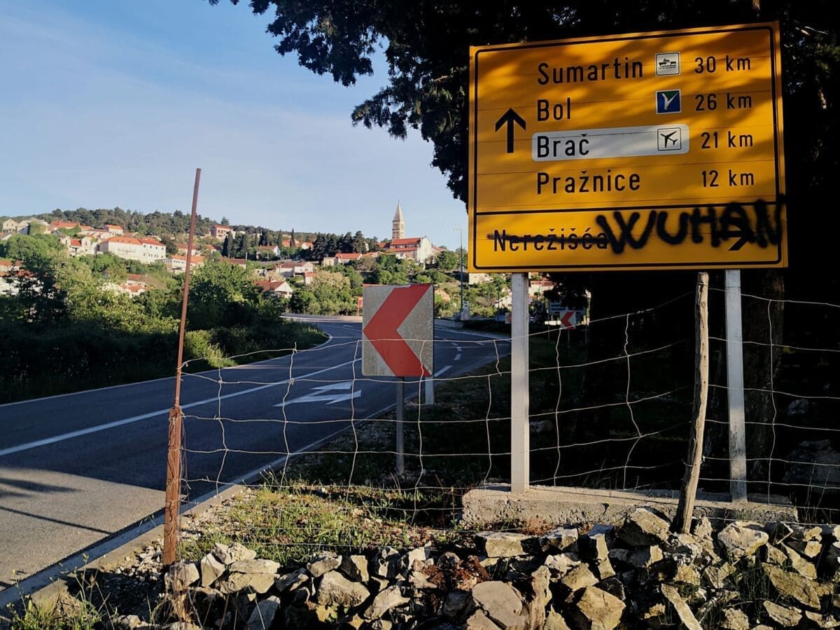 Tako je u petak osvanuo prometni znak na kojem je prekriženo Nerežišća i sprejem ispisano Wuhan.