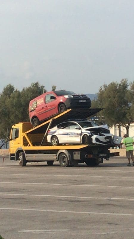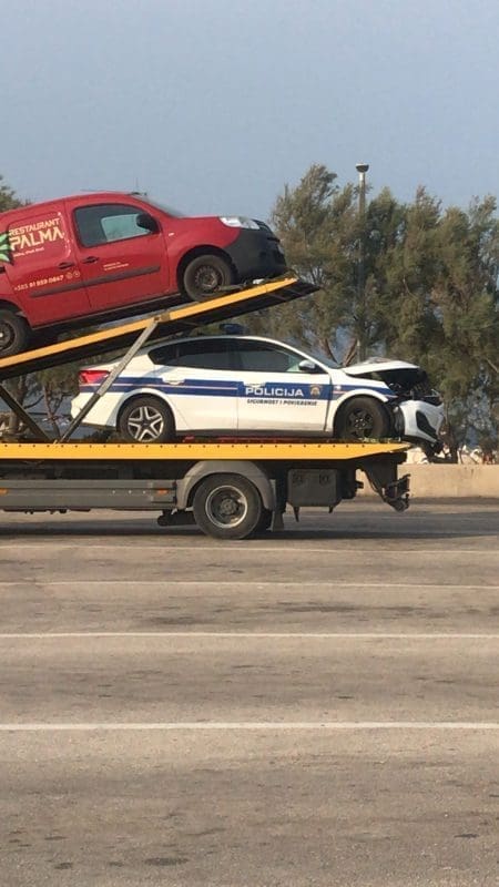 Nakon slijetanja automobil je udario u zid, a u nesreći su lakše ozlijede zadobili dvoje policijskih službenika među kojima je jedna vozačica i suvozač. Kako saznajemo, oboje su lakše ozlijeđeni, a na policijskim vozilu je nastala veća materijalna šteta.