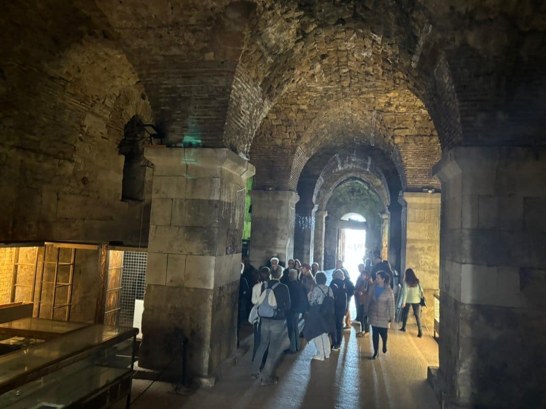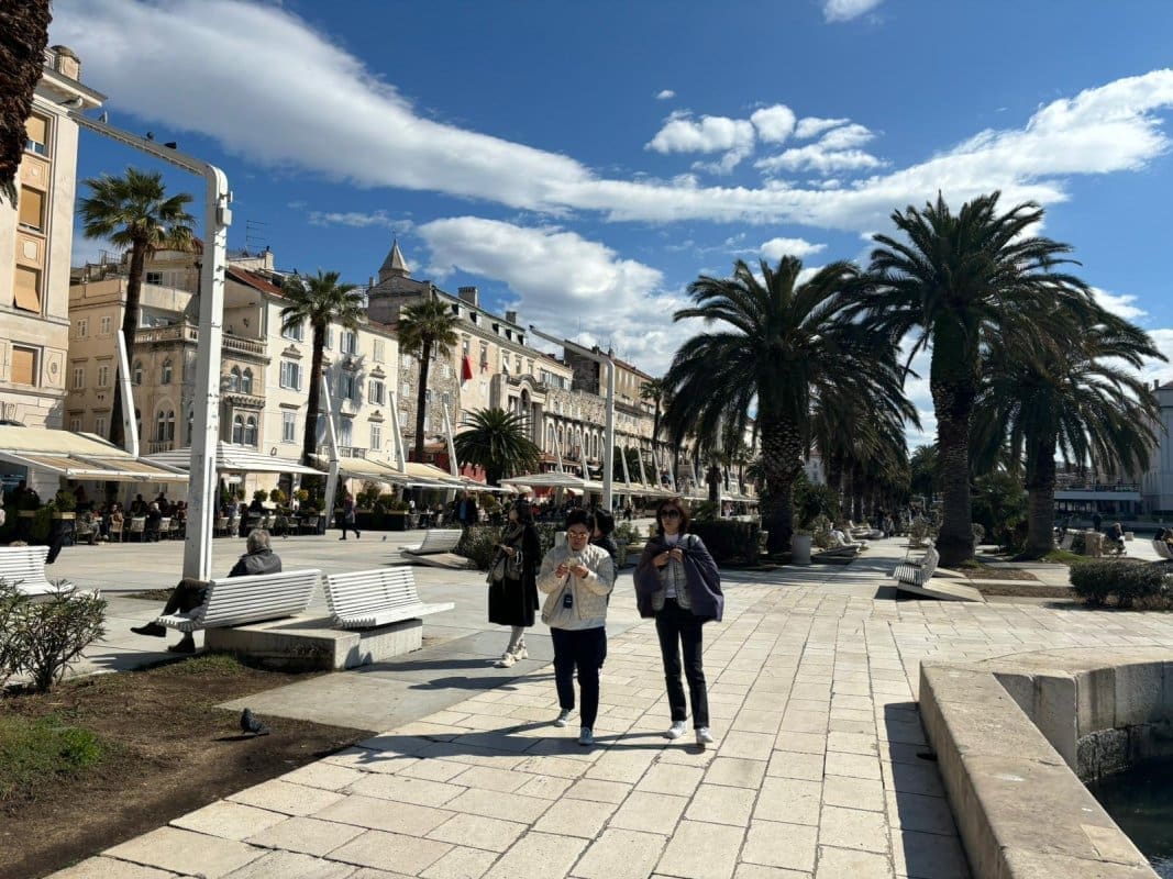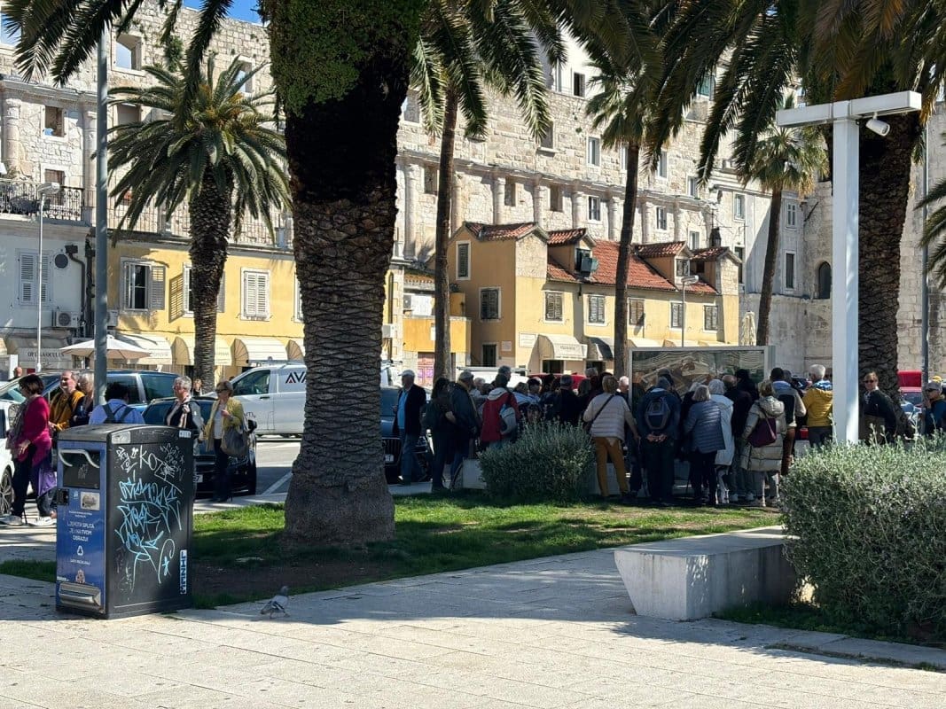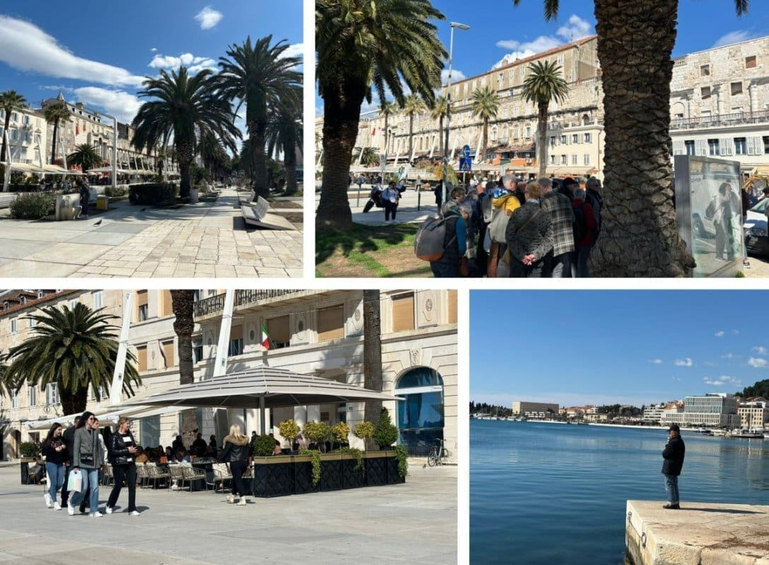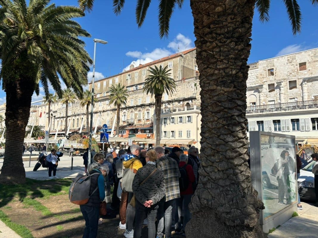Klasičnim turističkim rutama, prate i pozorono slušaju o povijesti Dioklecijanovog grada, a u pauzama dive se moru i sjedinjuju sa Splićanima na Rivi.